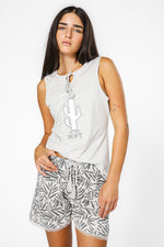 סט פיג'מה קצרה מבית המותג SIS המורכבת מכנסיים קצרים עם גומי בקו המותניים ושרוך קשירה ומחולצה קצרה ללא שרוולים עם הדפס מתוק של קקטוס.