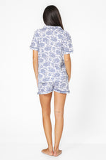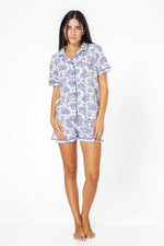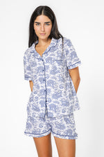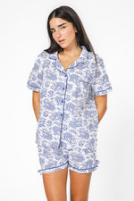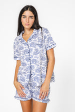 פיג'מה מכופתרת קצרה בצבעים כחול לבן