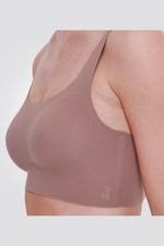 טופ בגוון חום מבית המותג SLOGGI, ללא תפרים, בעל צאוורון עגול עם כוסות מרופדות ונשלפות