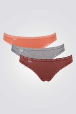 מארז שלישיית תחתוני טנגה מבית המותג SLOGGI, עשויים מבד רך נעים לנוחות מוגברת במהלך היום.