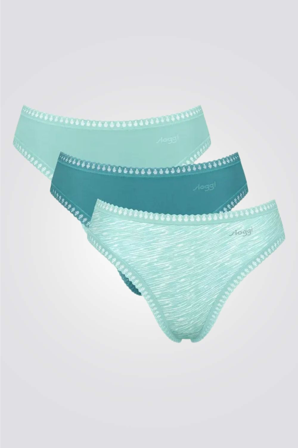 מארז שלישיית תחתונים מבית המותג SLOGGI בגזרת היי לג בשלושה צבעים.