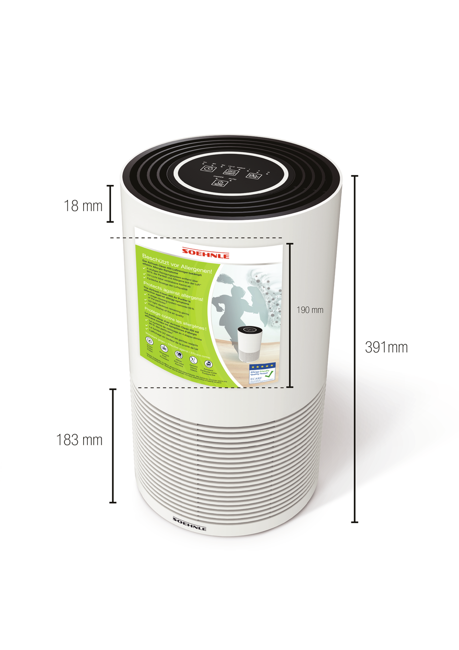 מסירה עד 99.95% מהחלקיקים (µm3) כולל ריחות, זרימת אוויר 145 מ"ק/שעה, לחדר עד 38 m²,