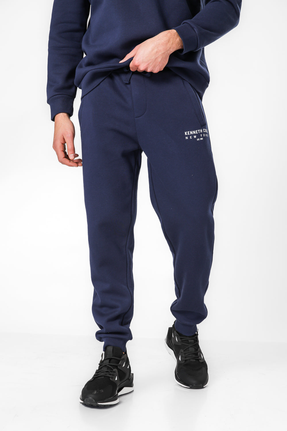 מכנסי טרנינג ארוכים לגברים מבית המותג KENNETH COLE בגזרת Slim עם מותן אלסטית בשילוב שרוכי קשירה, כיסים קדמיים ומכפלת אלסטית.