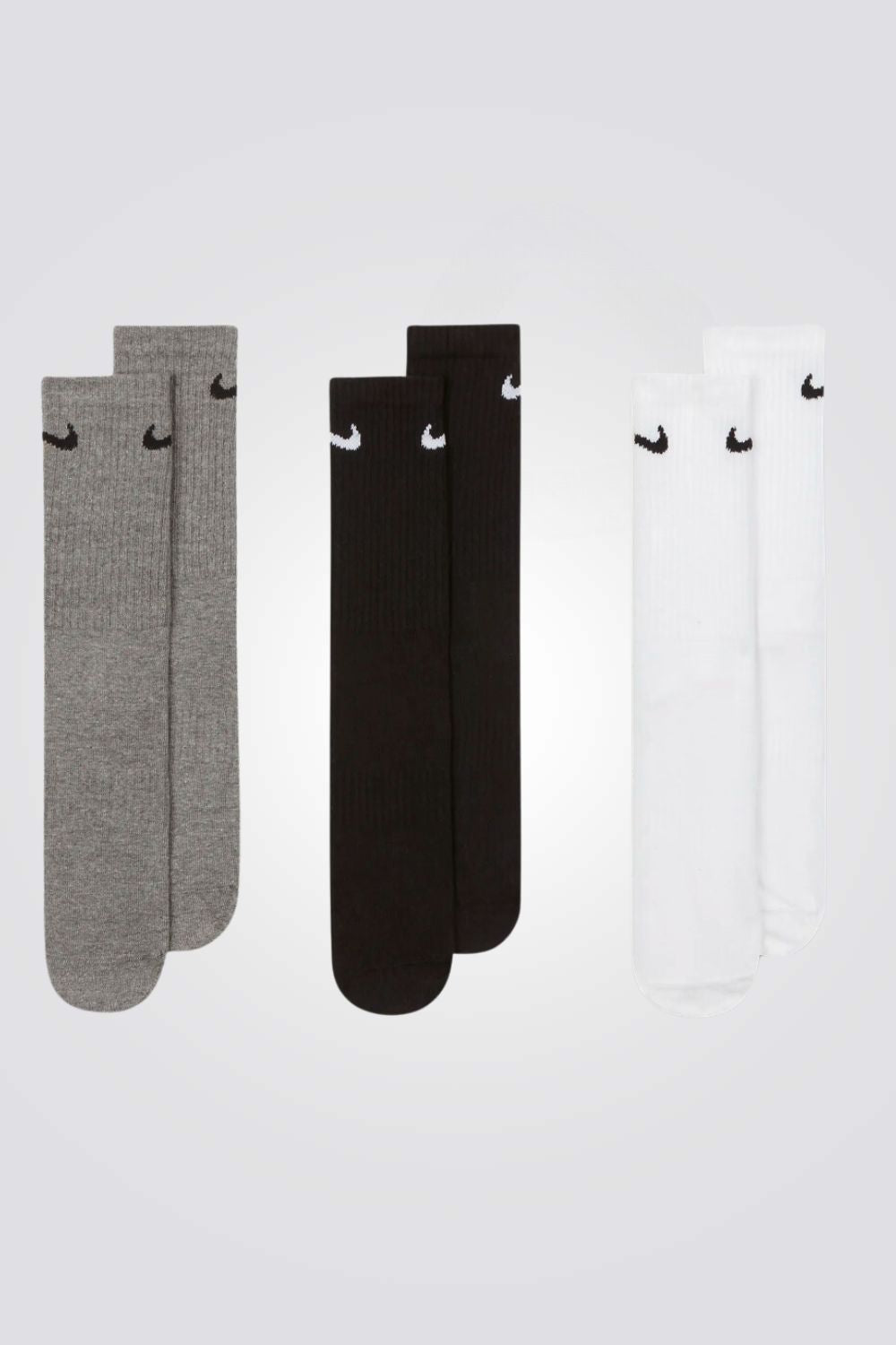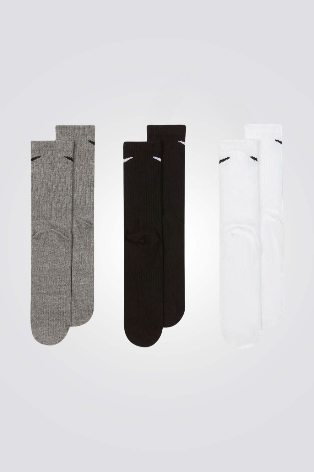 מארז 3 זוגות גרביי ספורט לגברים Everyday Lightweight בצבע שחור לבן ואפור