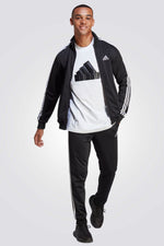 חליפה לגברים מבית המותג ADIDAS בעלת מכנסיים עם שרוך במותן להתאמה אידיאלית , כיסי צד בז'קט לשמירה אידיאלית של החפצים החשובים שלך במהלך אימון . אופנתי במיוחד מצד אחד ונוח מאוד מצד שני . הרכב בד : טריקו 100% פוליאסטר ממוחזר