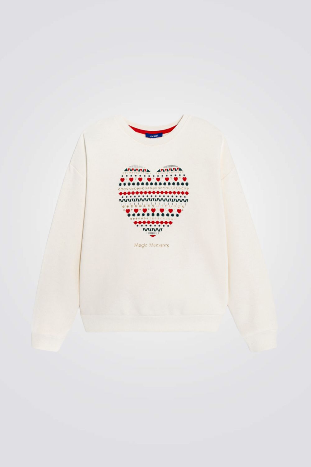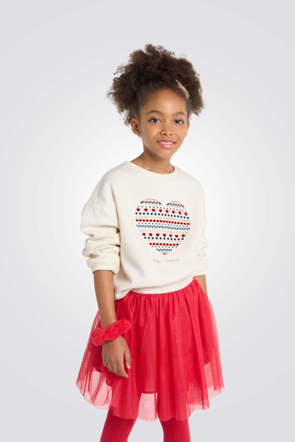 סווטשירט לילדות בצבע לבן עם לב צבעוני
