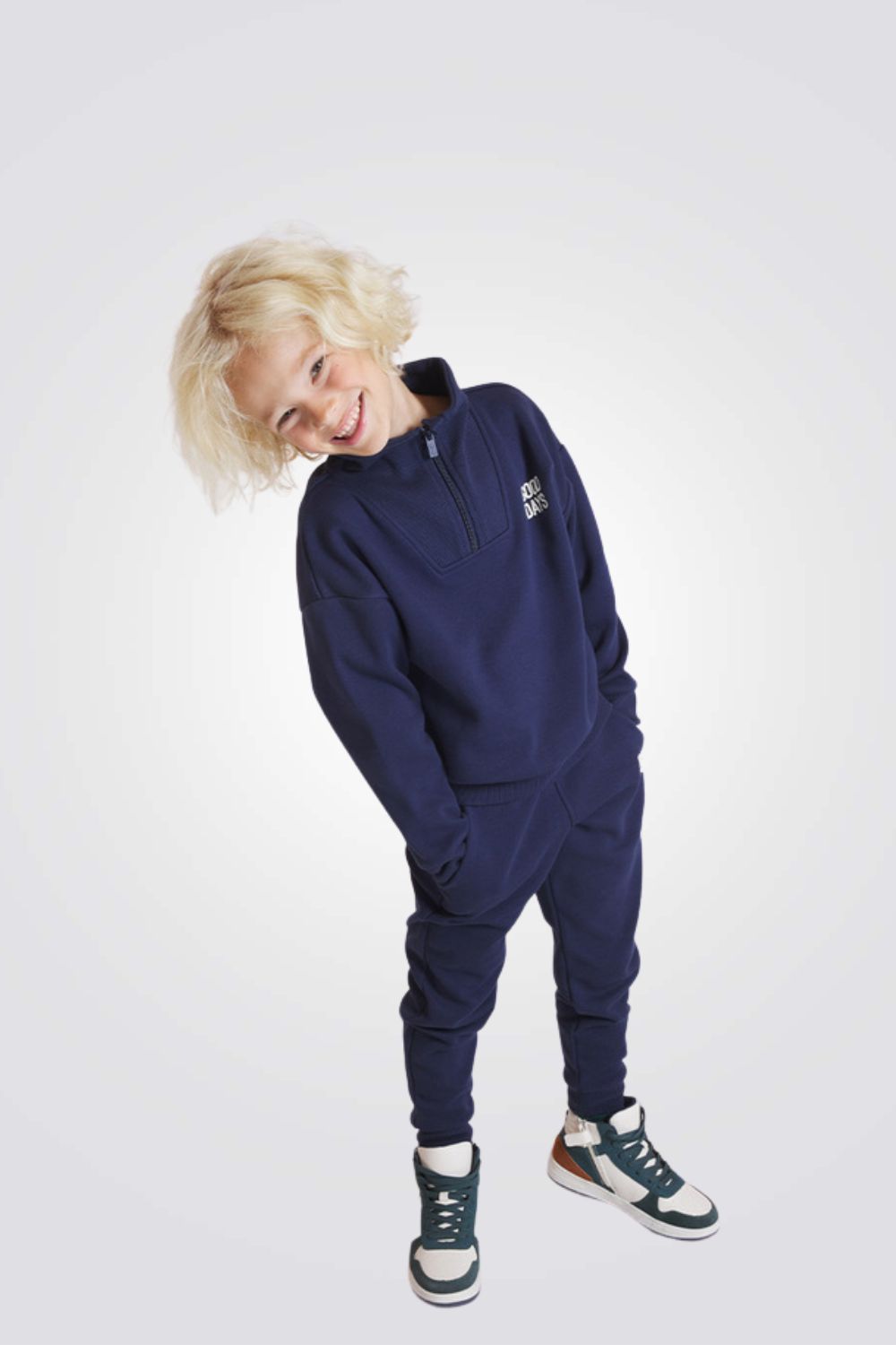 סווטשירט לילדים עם צווארון גבוה בצבע נייבי
