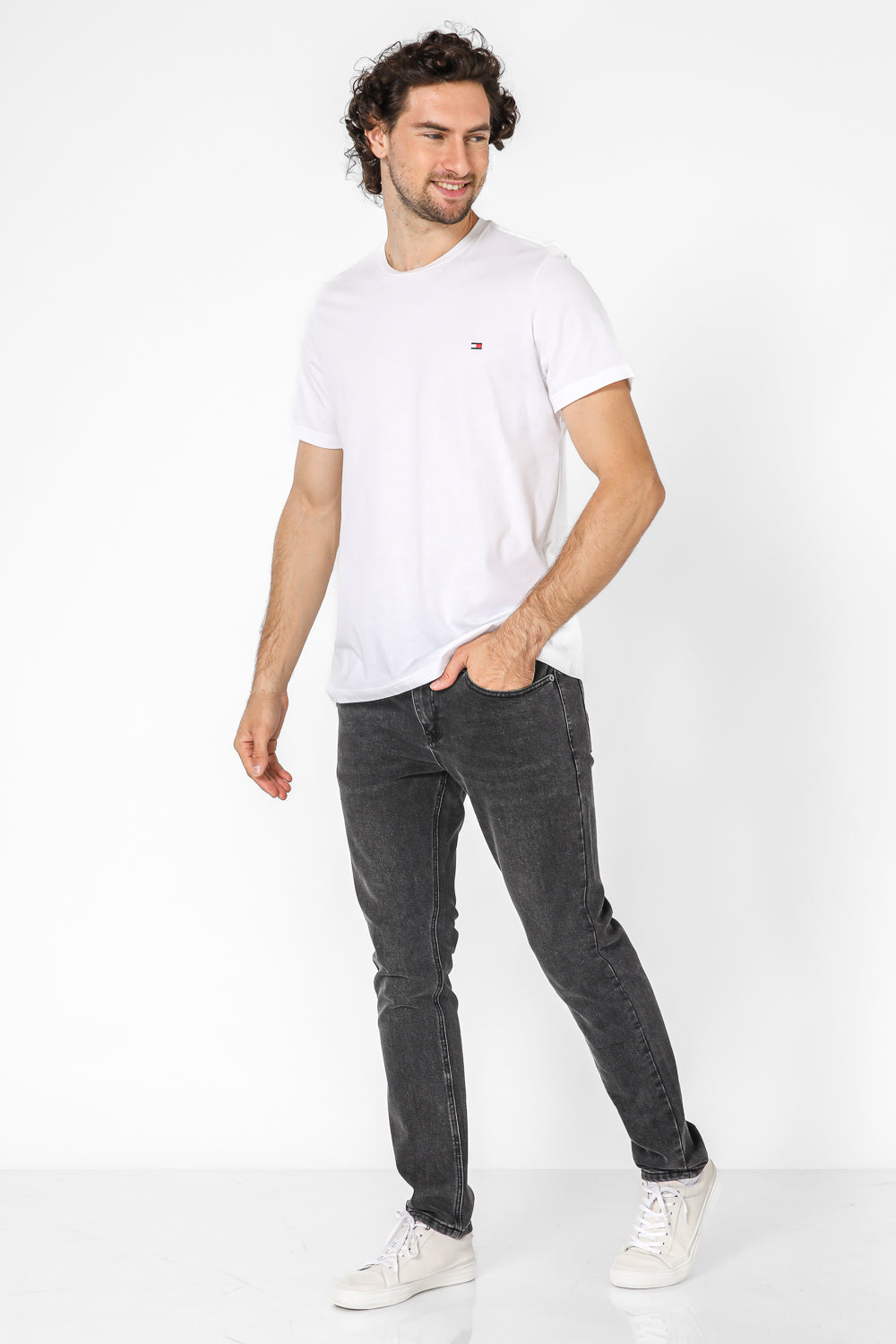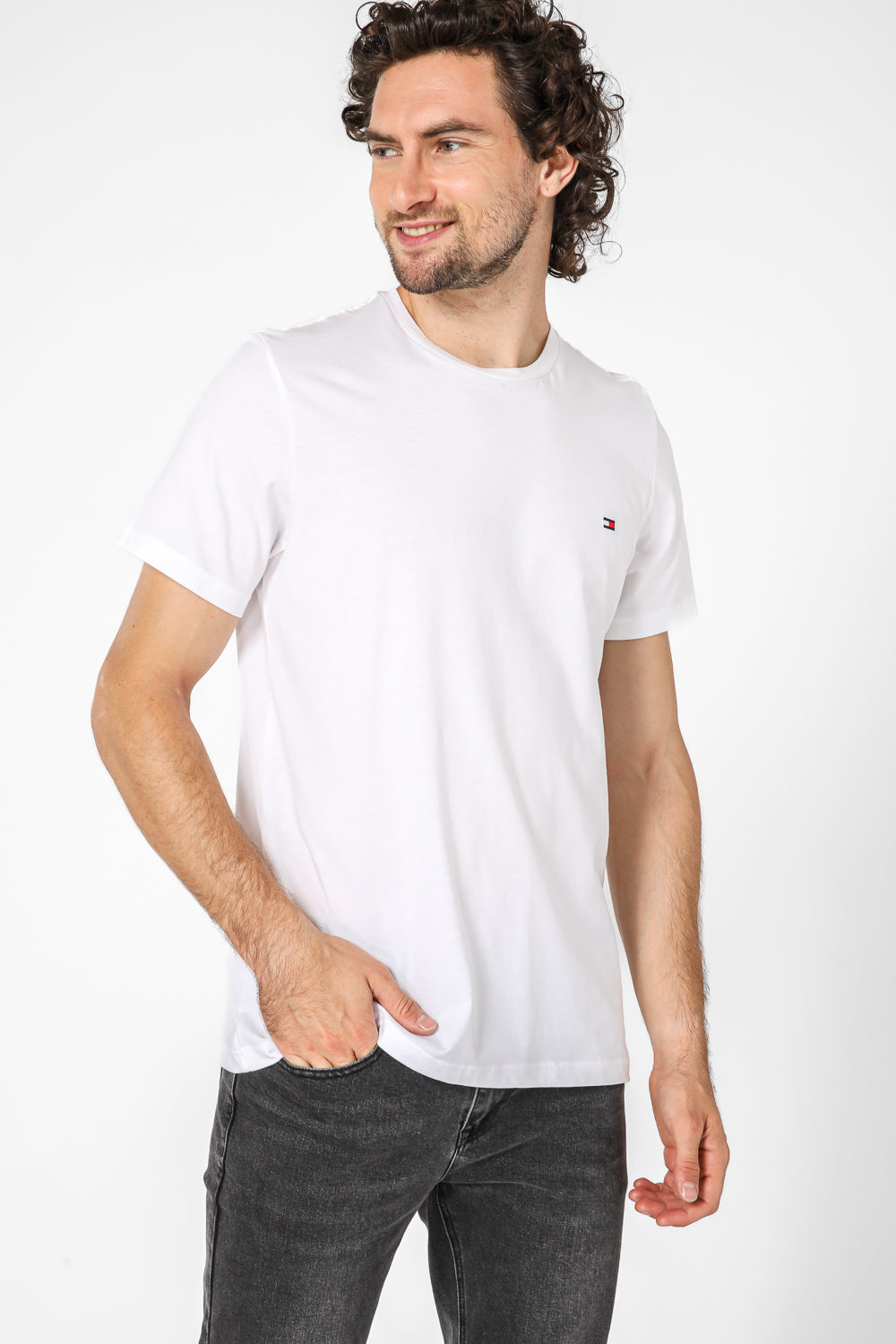 טישירט BASIC מבית המותג Tommy Hilifger, טישירט בעלת שרוולים קצרים וצווארון עגול, לוגו המותג רקום בחזית