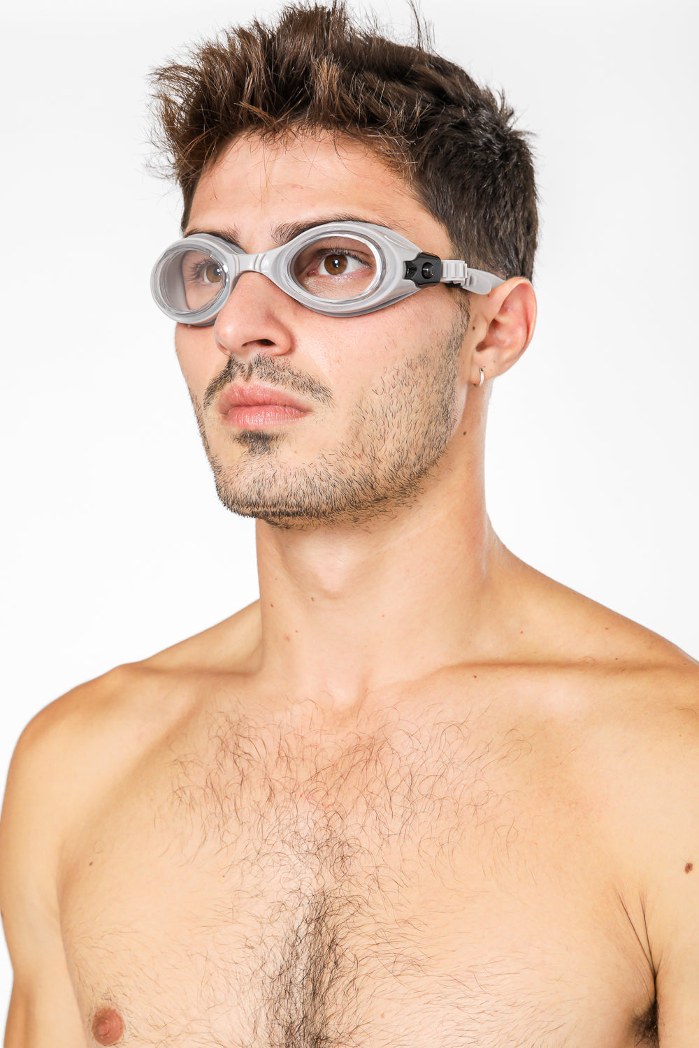 משקפת צלילה עם עדשה נוגדת אדים, אטם ורצועת מסיליקון מתכווננת עם כפתור.