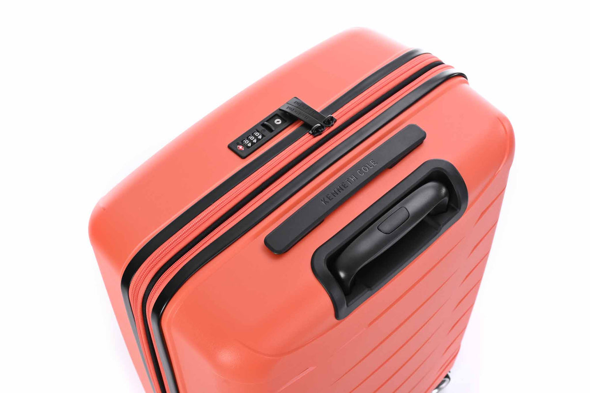 מזוודה מבית המותג KENNETH COLE, מנעולי תקן TSA מובנים וגלגלי סיליקון איכותיים כפולים.