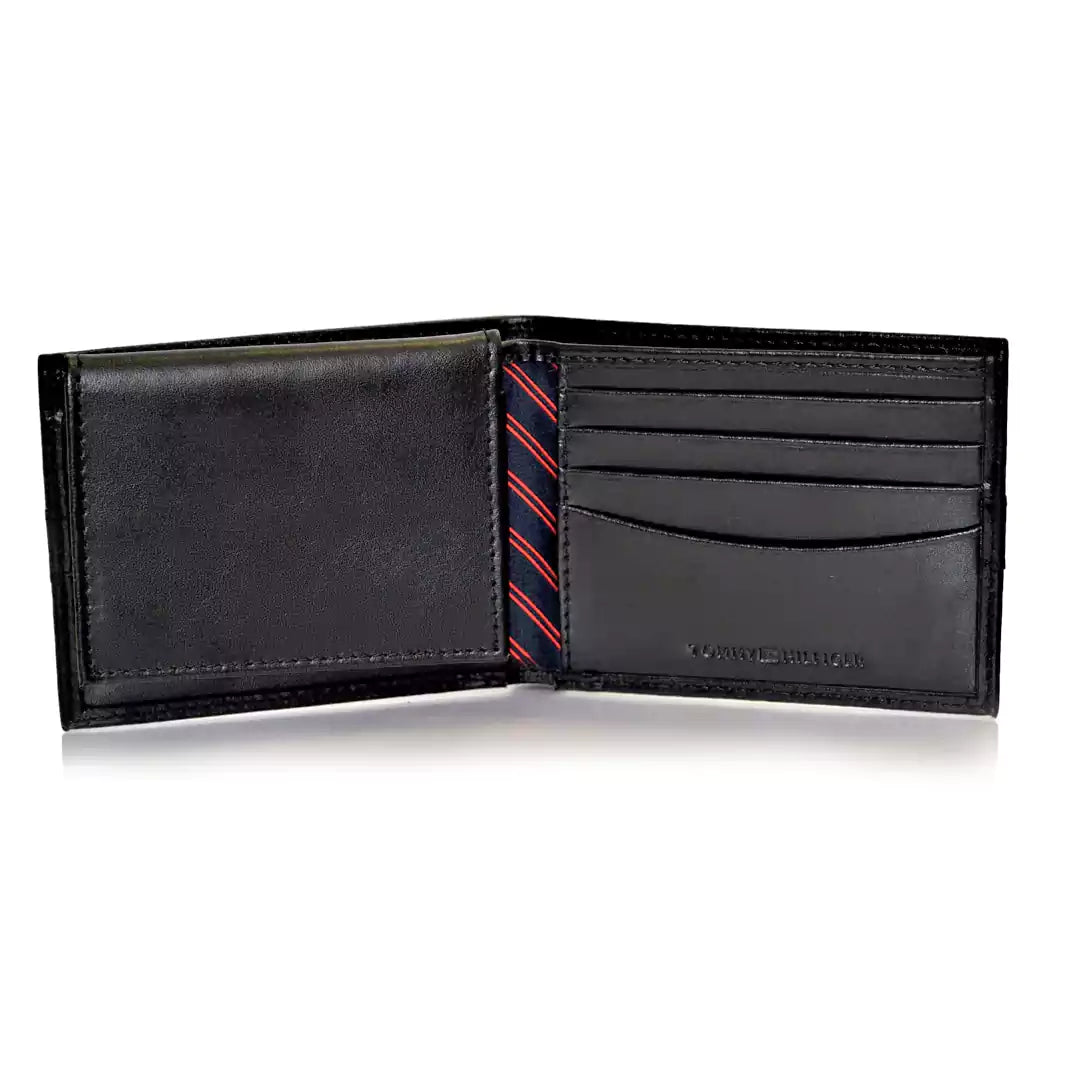 ארנק מבית המותג Tommy Hilfiger,מחלקת שטרות,4 תאים קבוים לכרטיסים,ארנק כרטיסים הניתן לשליפה שמכיל מקום חיצוני ל2 כרטיסים,2 תאים שקופים פנימיים ו4 כיסי ניילון.