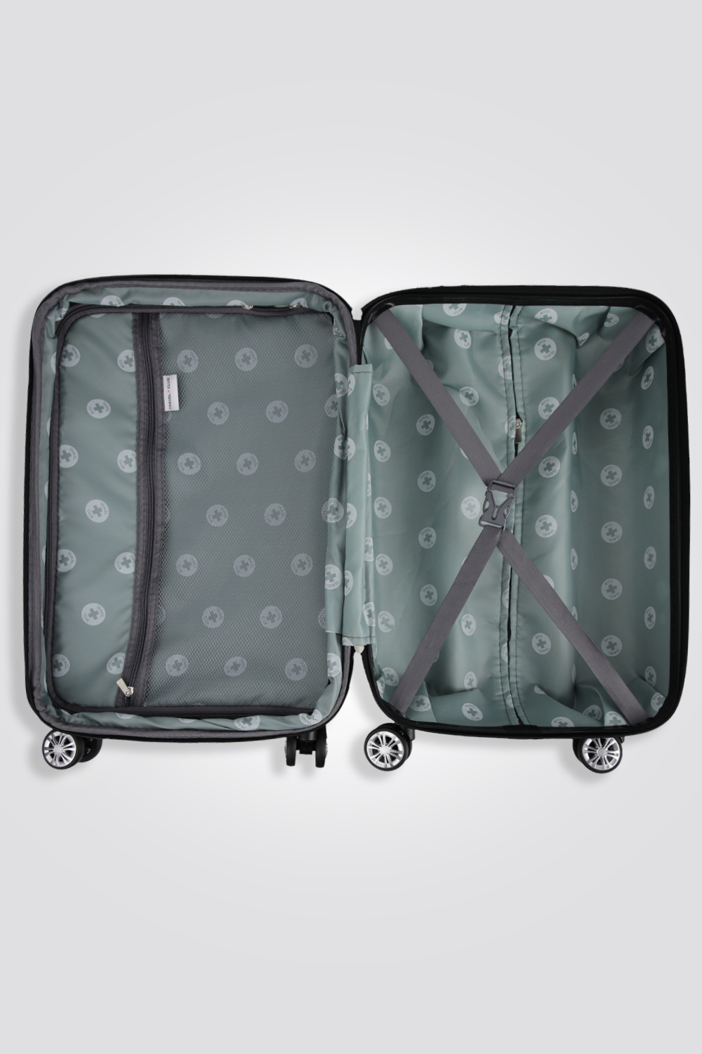 מזוודת טרולי קשיחה אשר מיועדת כמזוודת עליה למטוס, בעלת ידית טלסקופית לנשיאה קלה, 4 גלגלים נשלפים כפולים ליציבות מרבית, רוכסן להרחבה, ארגונית פנימית מעוצבת הכוללת 2 חלוקות מרכזיות, מנעול TSA מובנה ותקני אבטחה מקסימלית.