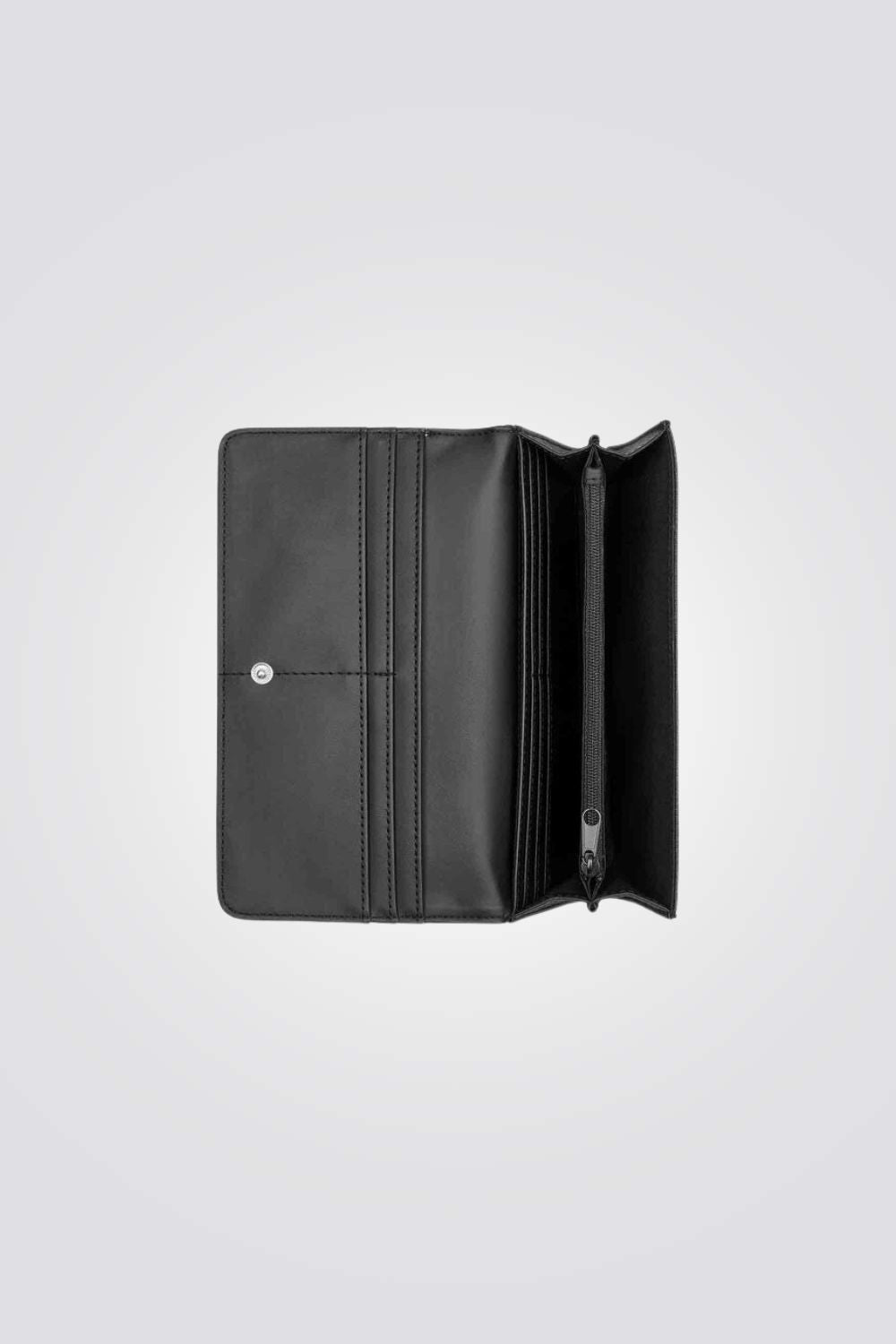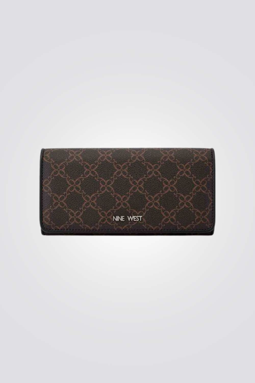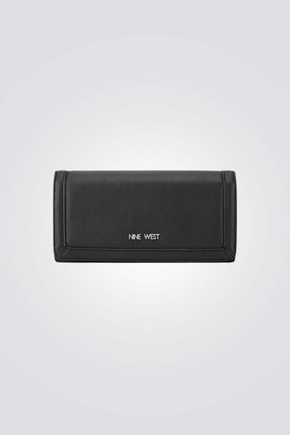 ארנק לנשים מבית המותג NINE WEST, בעיצוב יוקרתי, קלאסי ונקי, נסגר בסגירת כפתור ובעל שלושה תאים פנימיים המתאימים לאחסון כסף קטן וכרטיסים.