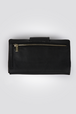 ארנק עור מבית המותג KENNETH COLE בצבע שחור עם תאים לכרטיסים ותא מרכזי עם סגירת רוכסן, כיס אחורי וסגירת מגנט ראשית.