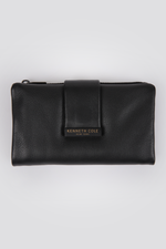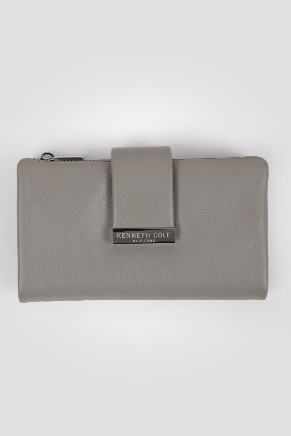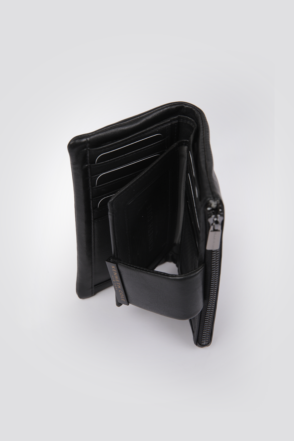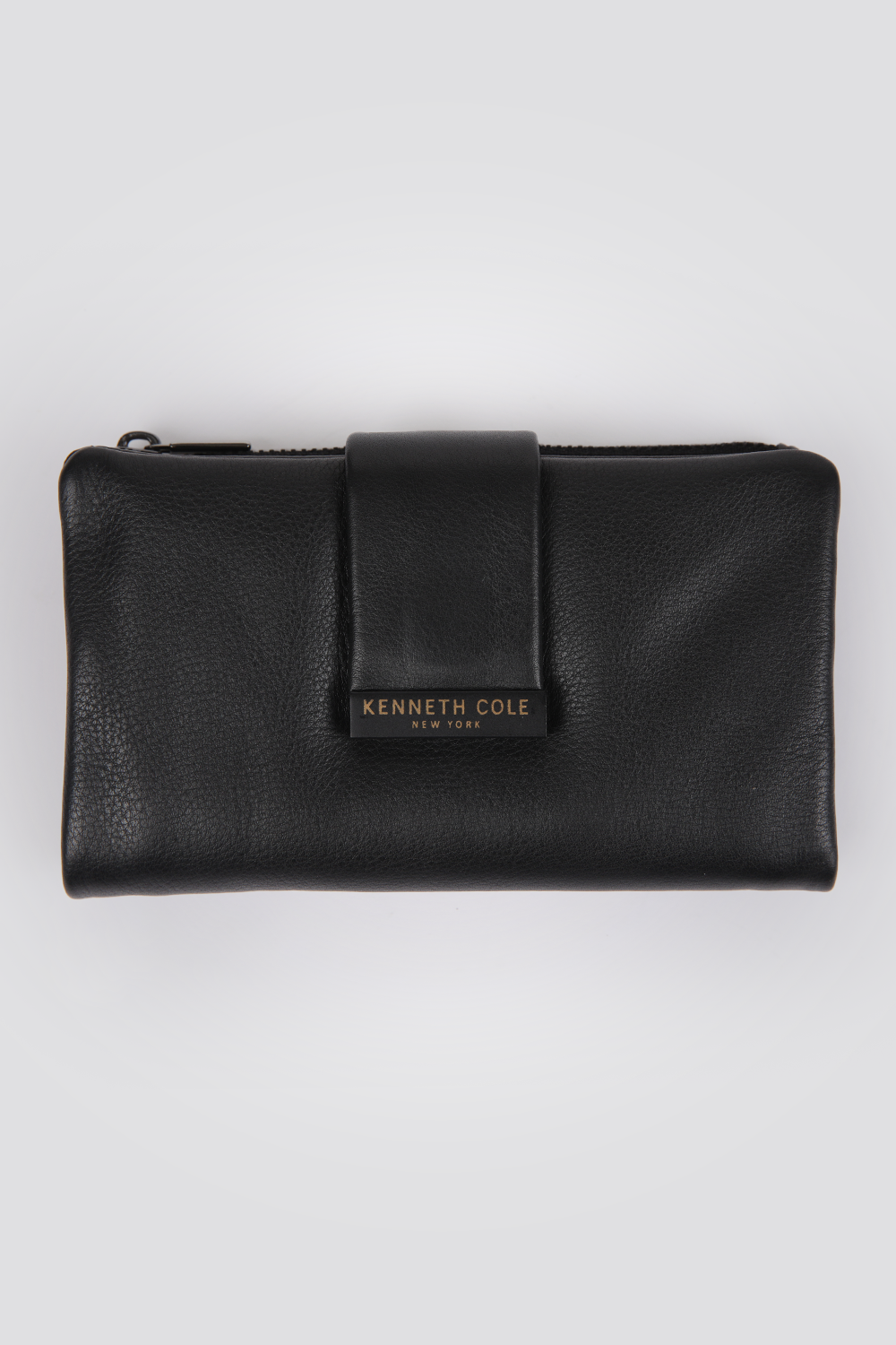 ארנק עור מבית המותג KENNETH COLE עם תאים לכרטיסים, תא פנימי פתוח לאחסון ותא חיצוני עם סגירת רוכסן, בעל סגירת מגנט ראשית.