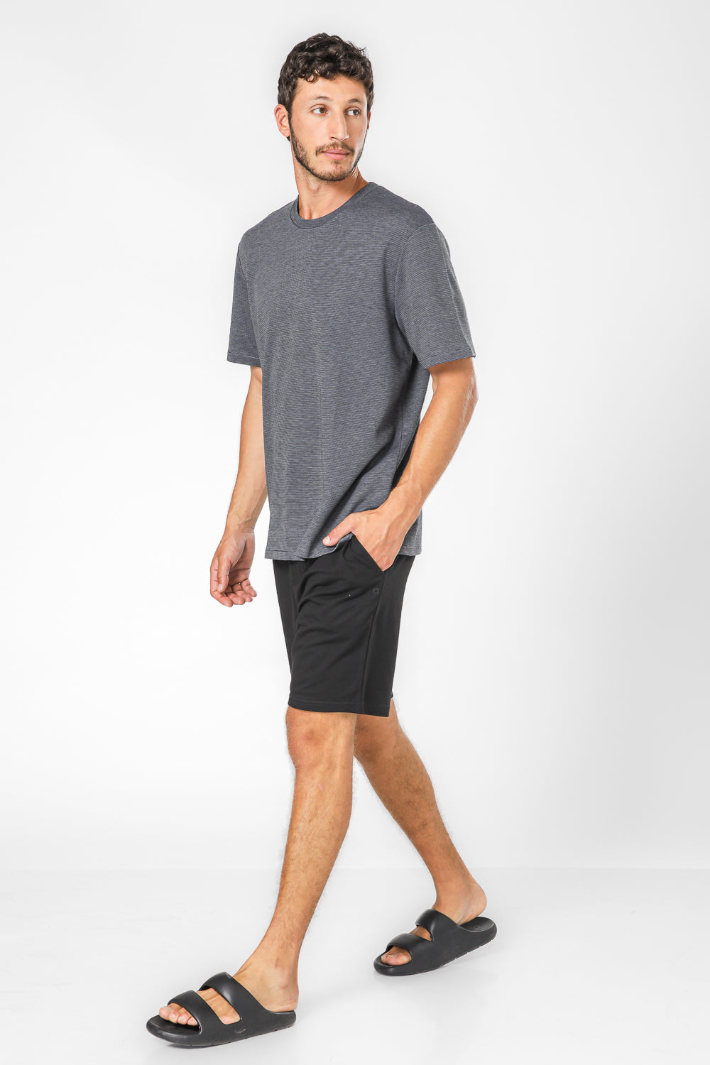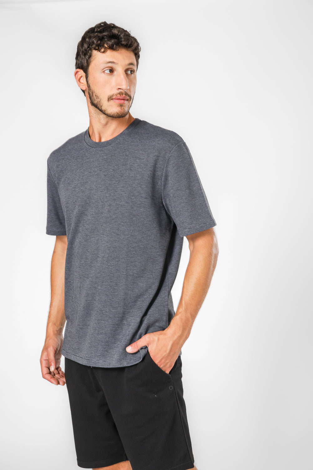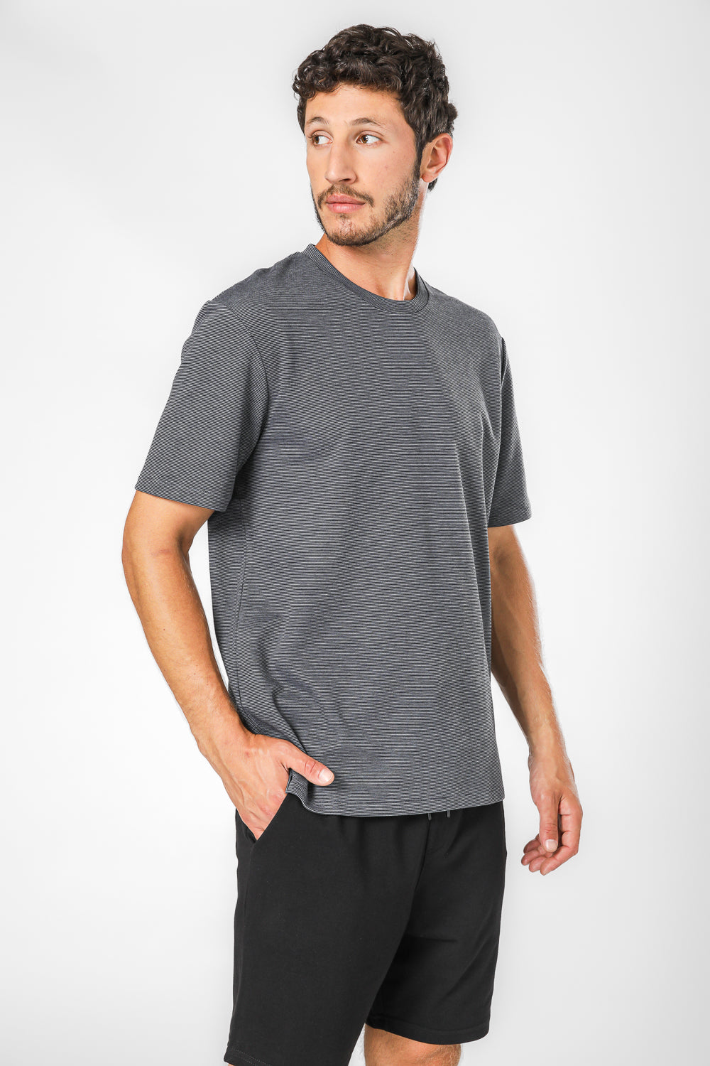 חולצה קצרה לגברים מבית המותג DELTA העשויה מבד אינטרלוק דק ונעים בגזרה קלאסית במוטיב פסים עם שרוולים קצרים.