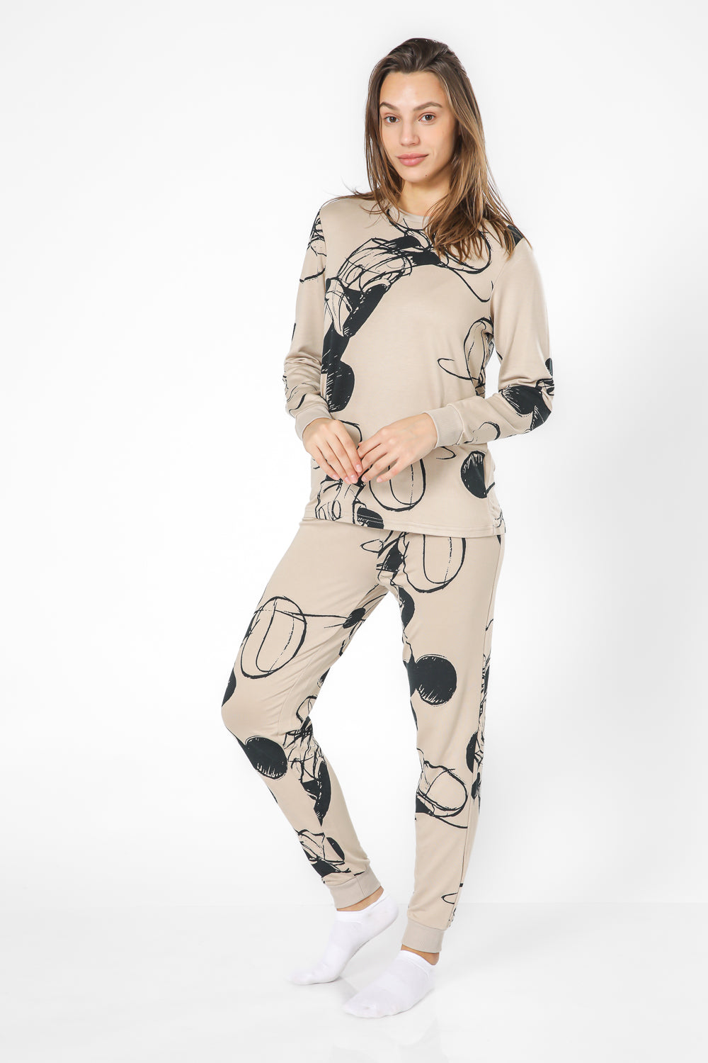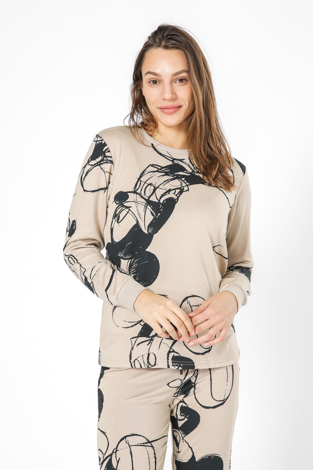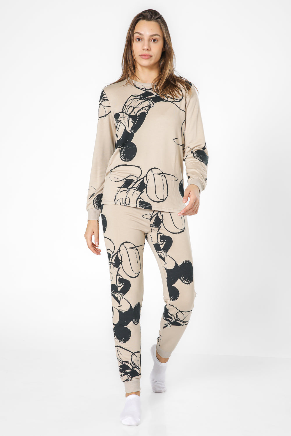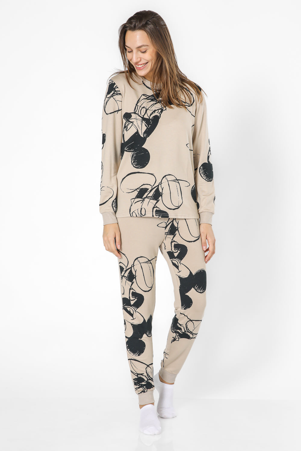 סט פיג’מה מבד פוטר רך ומפנק עם הדפס מיקי מאוס. חולצה עם שרוולים ארוכים, צווארון עגול וסיומת מנג’ט ומכנסיים ארוכים, שרוך קשירה וסיומת מנג’ט.