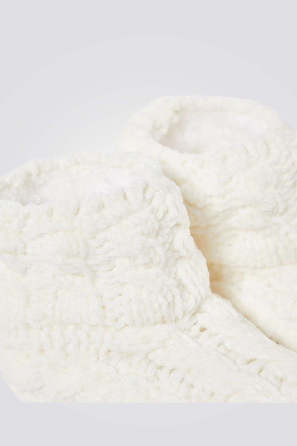 גרבי בית מפנקות וחמימות מבית המותג הצרפתי ETAM מאריג שניל עבה ורך בדוגמת צמות, עם ביטנה פרוותית ונקודות סיליקון בתחתית למניעת החלקה.