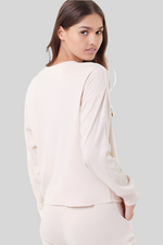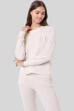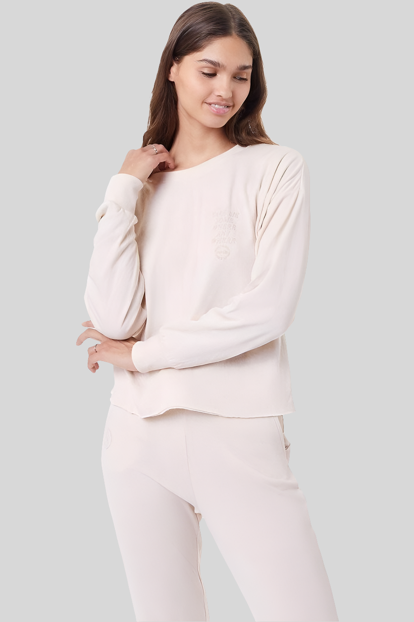 חולצת פיג'מה מבית המותג הצרפתי ETAM מכותנה אורגנית רכה ונעימה במיוחד, עם שרוולים ארוכים בסיומת מנג'ט, מפתח צוואר עגול ועיטור הדפס עדין בדש החולצה.