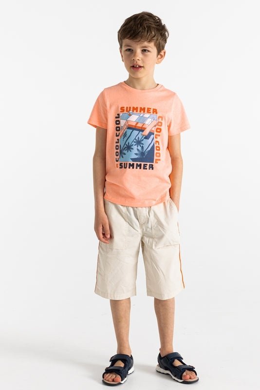 חולצה מבית המותג OKAIDI, מתאימה לכל לוק עם ג'ינס או דגמ"ח, צווארון עגול ושרוולים קצרים, הרכב בד 60% כותנה 40% פוליאסטר