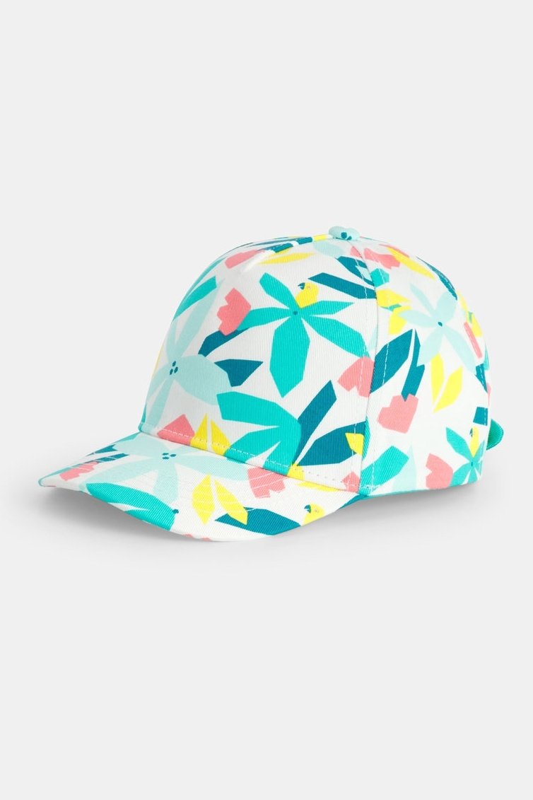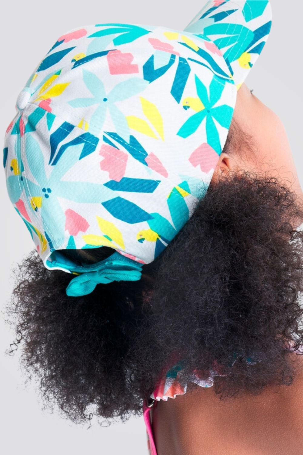 כובע מבית המותג OKAIDI,בעל סגירת סקוץ' והדפס פרחוני.