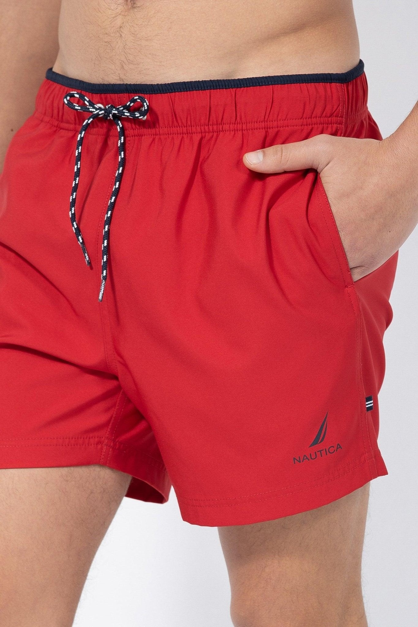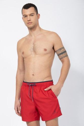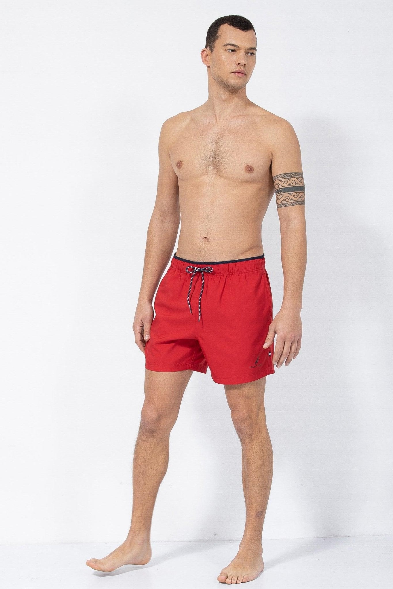 בגד ים אופנתי מבית המותג נאוטיקה NAUTICA. בגד ים קצר אדום RED עם גומי ושרוך במותן להתאמה ונוחות מירבית. עיטור שחור בגומי ולוגו שחור בקדמת בגד הים. לבגד הים תחתון רשת פנימי. הרכב בד: 100% פוליאסטר