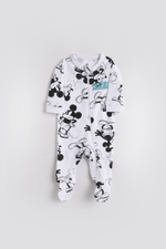 אוברול לתינוקות מבית המותג DELTA העשויי מבד אינטרלוק נעים ודק לעונת המעבר עם הדפס של מיקי מאוס, שרוולים ארוכים ורגליות. לאוברול יש שני רוכסנים, אחד שנפתח מלמעלה והשני מלמטה המאפשרים פתיחה מהירה והחלפה מבלי לחשוף את כל גופו של התינוק.
