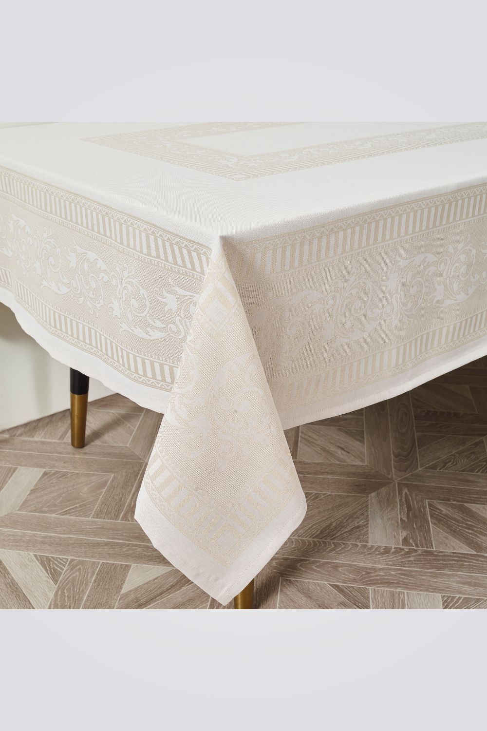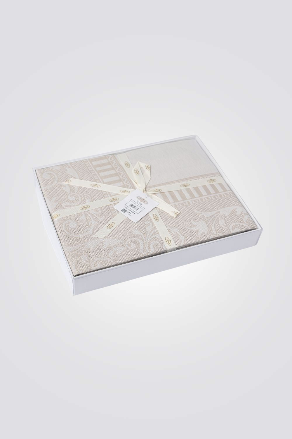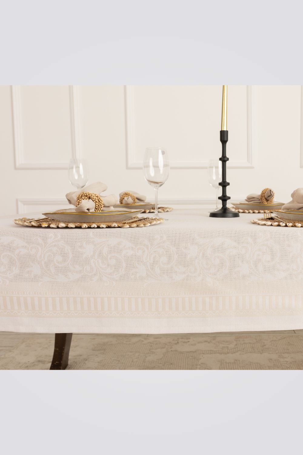 מפה מבית המותג ASHRAM, דגם אסתר בצבע אבן עם עיטורי פרחים רקומים.