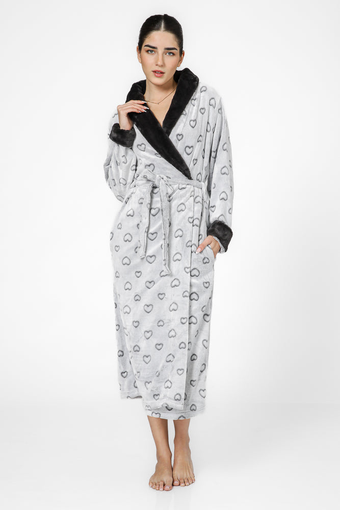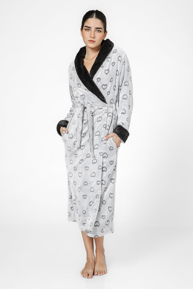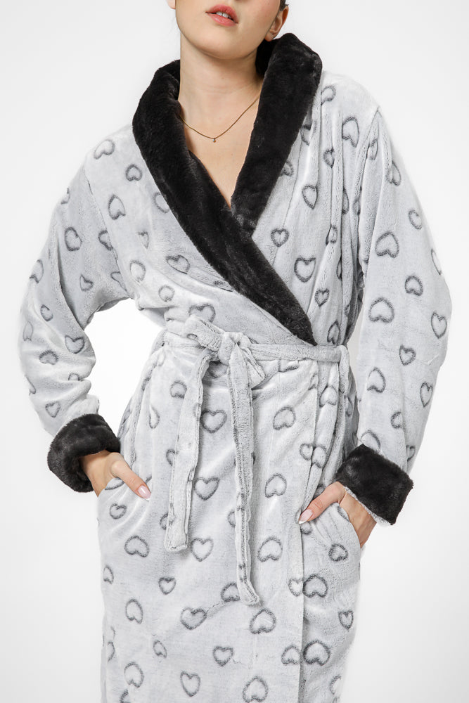 חלוק מפנק ורך מאוד מבית המותג BONITA DE MAS , במוטיב לבבות ו-2 כיסים גדולים בחזית