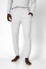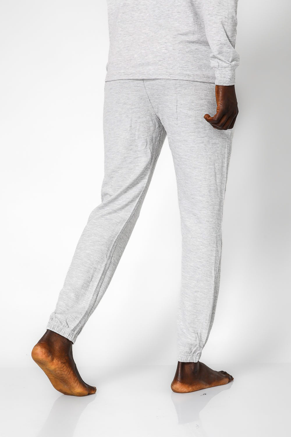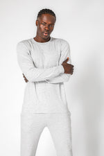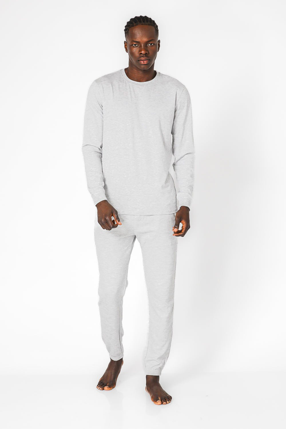 סט פיג’מה ארוכה דקה מבד במבוק לגברים בצבע אפור מלאנז'