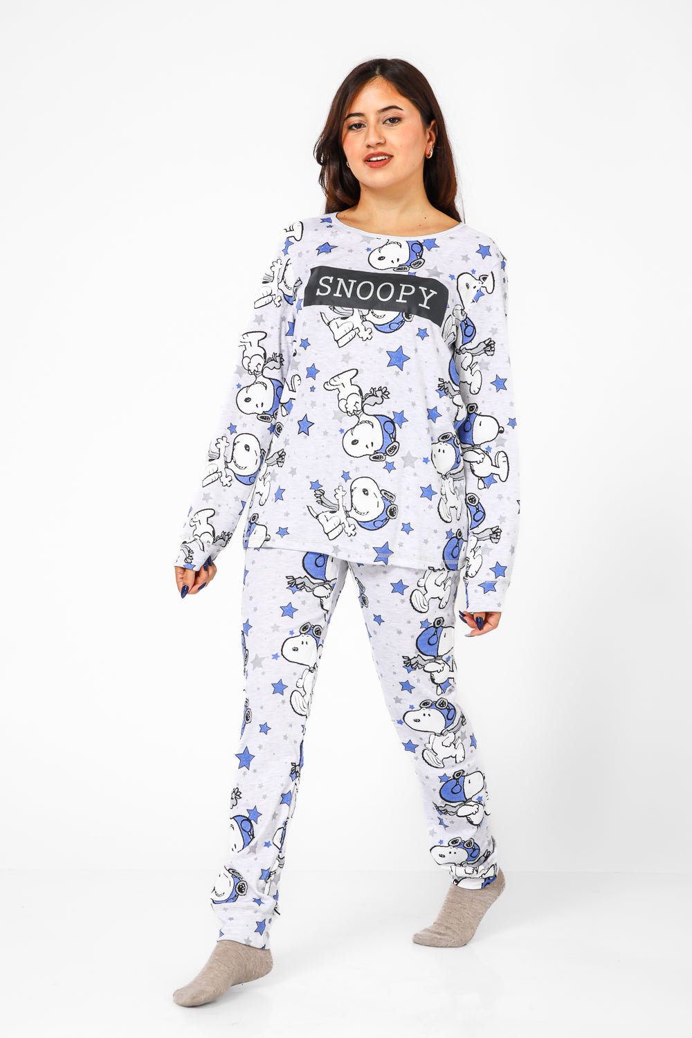 פיג'מה סנופי כוכבים אינטרלוק בצבע אפור