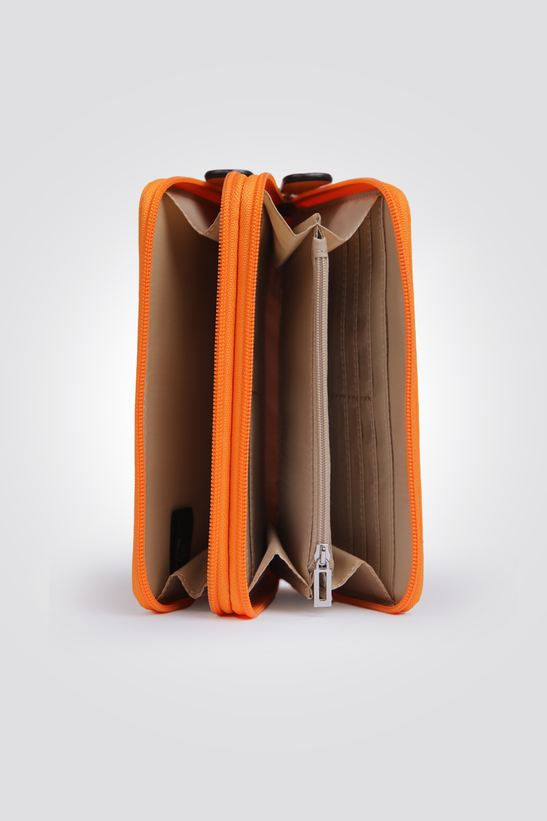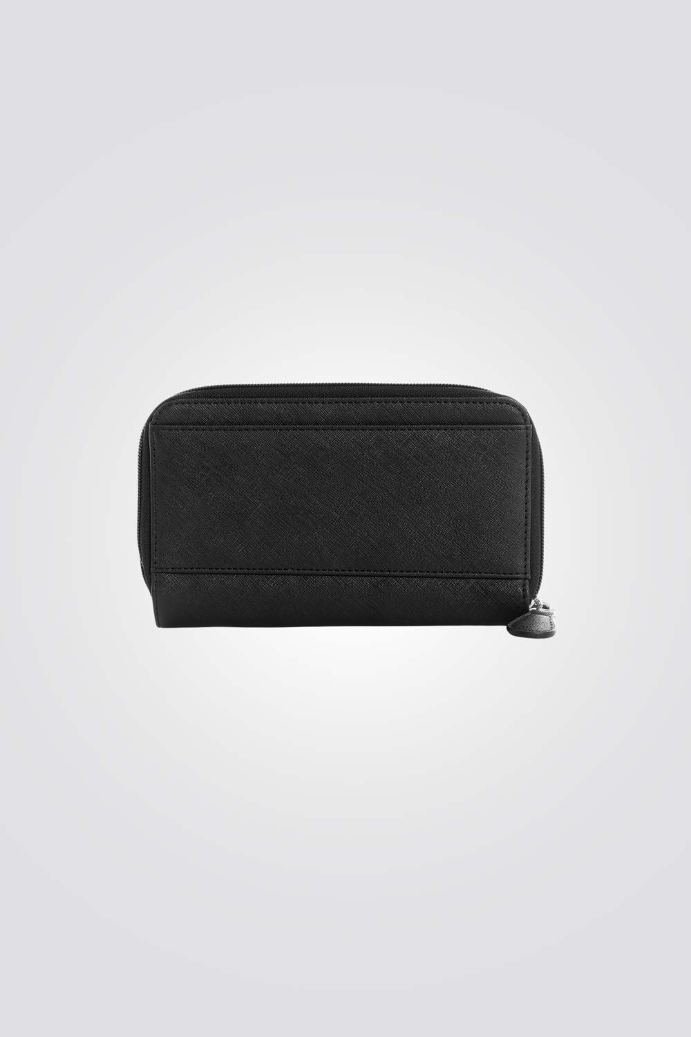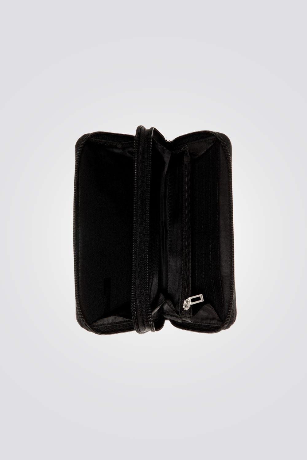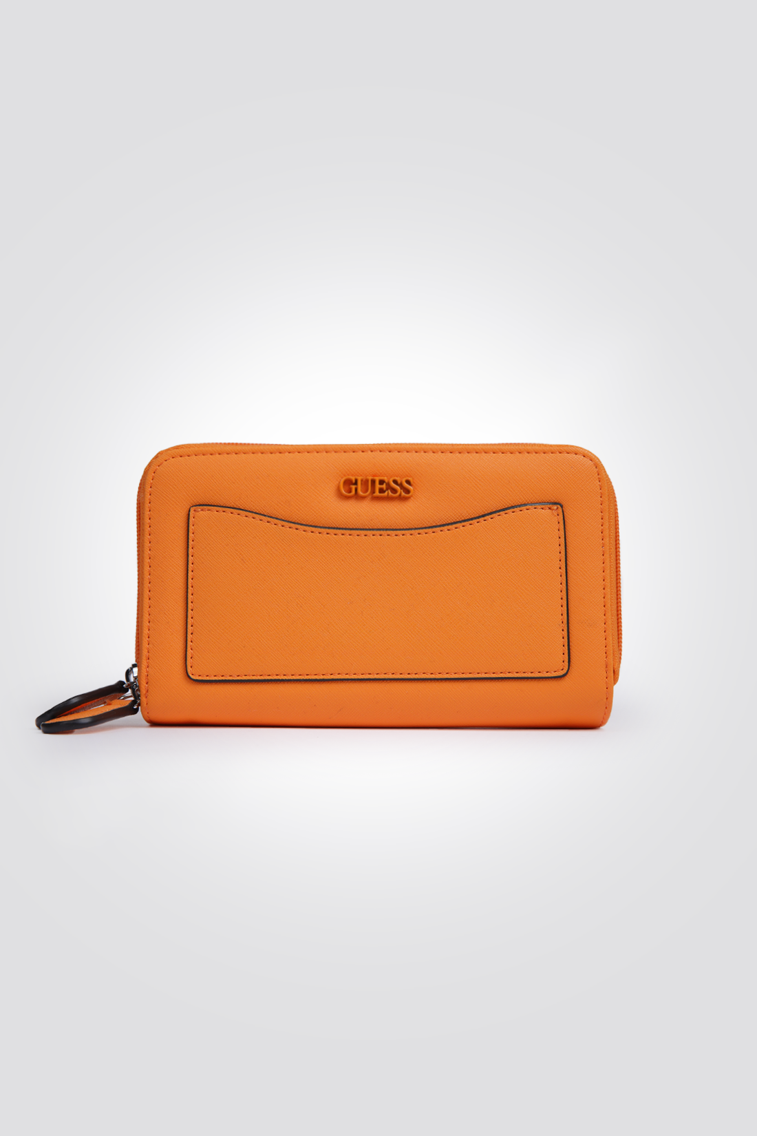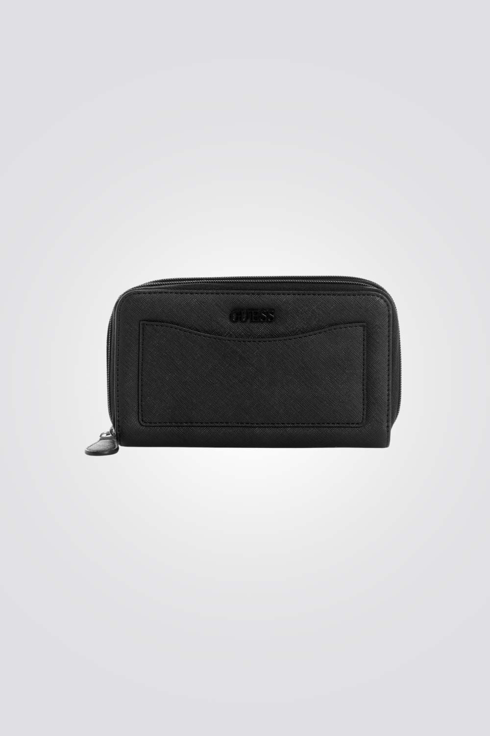 ארנק לנשים מבית המותג GUESS, בעיצוב נקי וקלאסי עם שני תאים וסגירת רוכסן, תאים לכרטיסים ועוד תא פנימי לכסף קטן.
