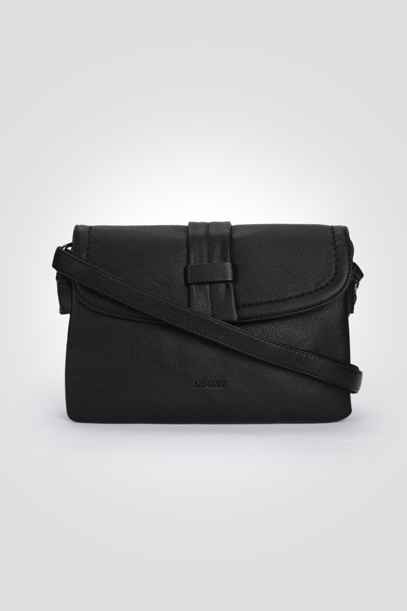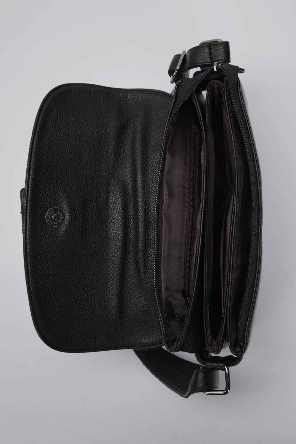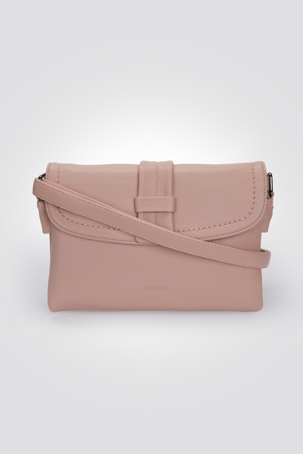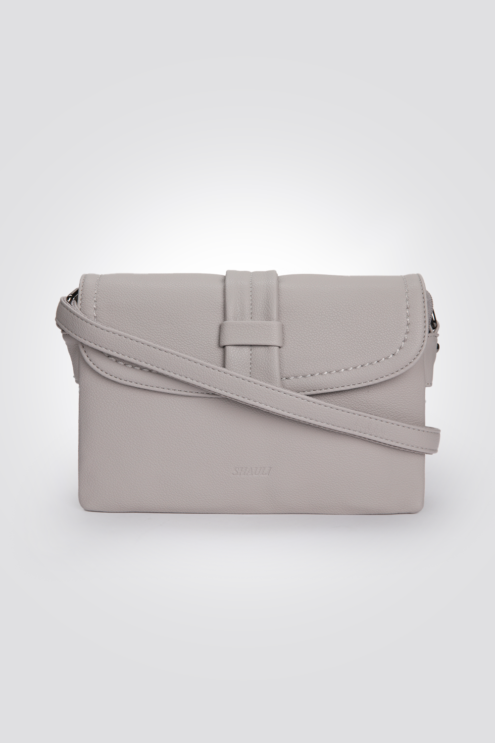 תיק צד לנשים מבית המותג SHAULI, בעיצוב קלאסי ונקי, מחולק לשלושה תאים הנסגרים בסגירת רוכסן ובנוסף סגירת מעטפת עם כפתור.