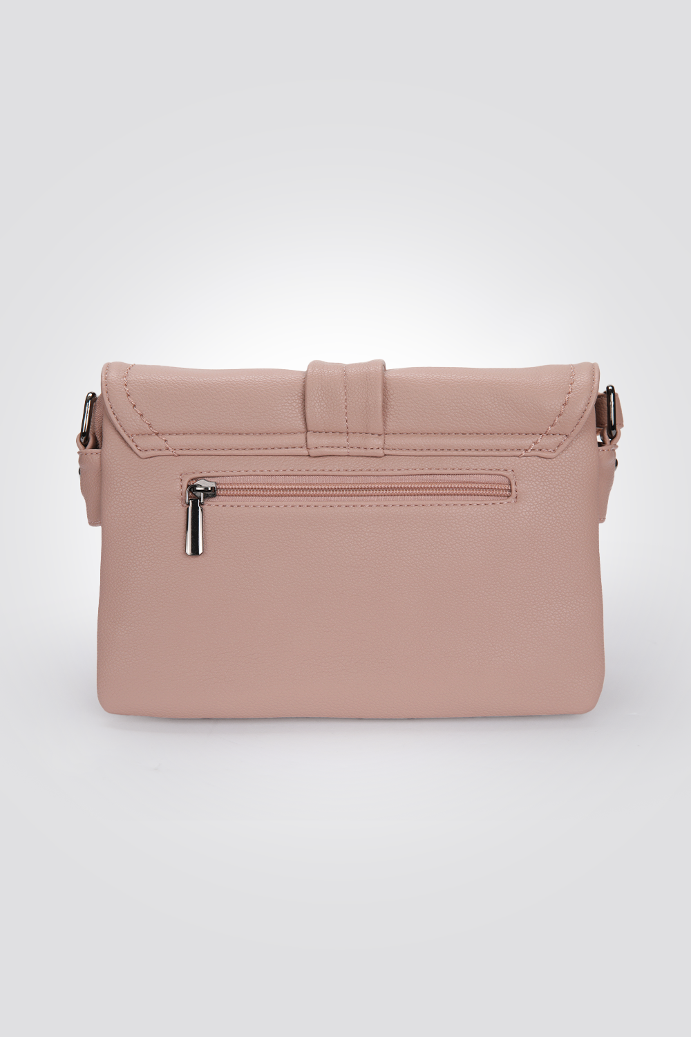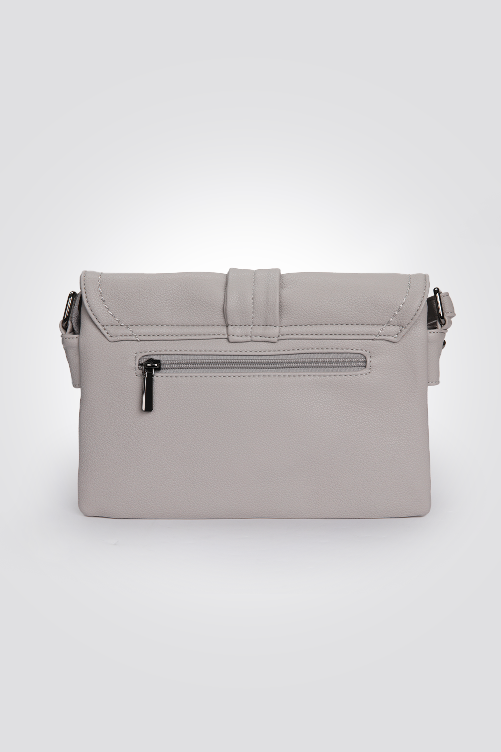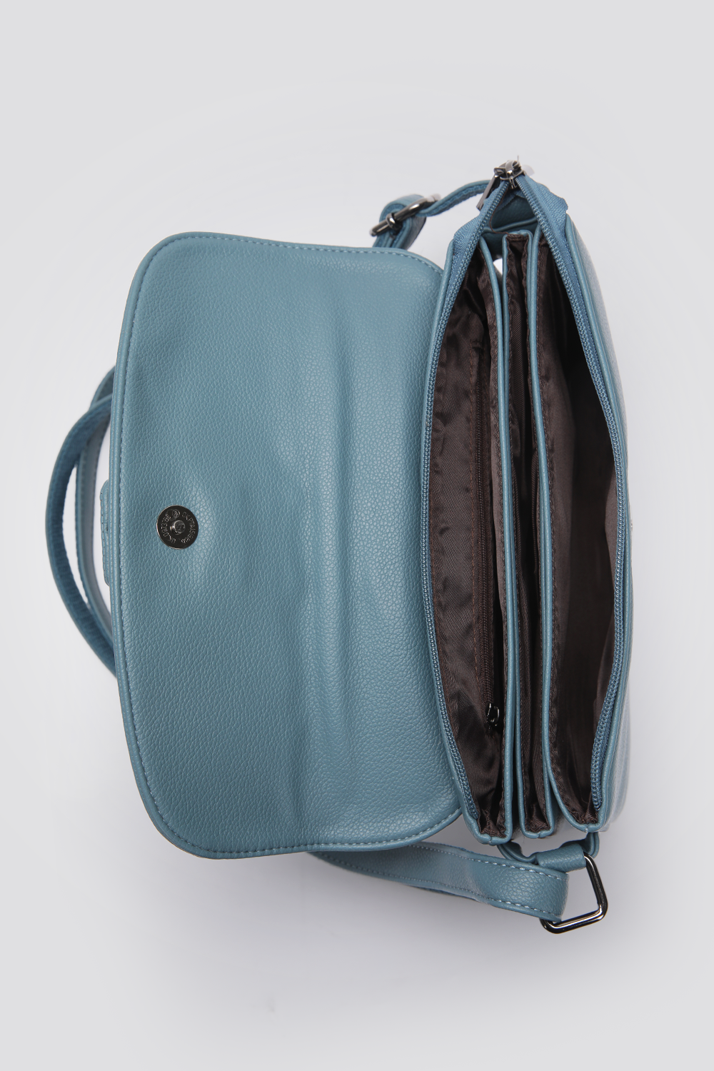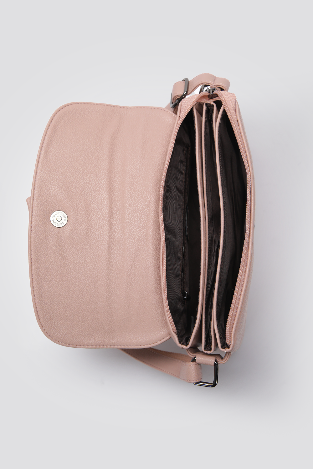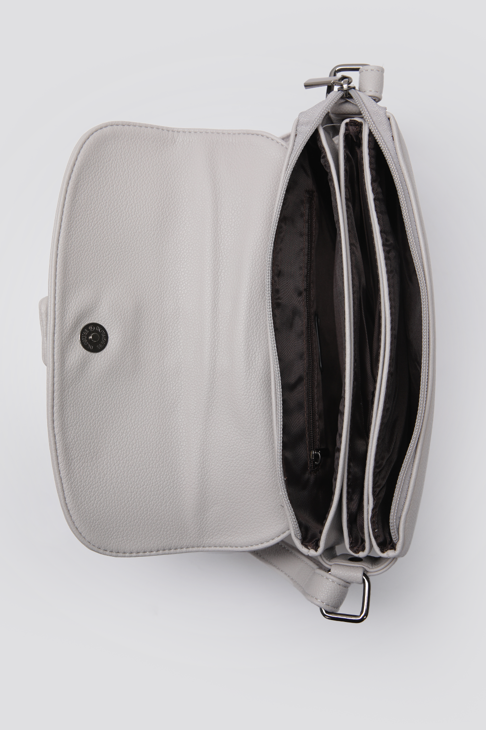 תיק צד לנשים מבית המותג SHAULI, בעיצוב קלאסי ונקי, מחולק לשלושה תאים הנסגרים בסגירת רוכסן ובנוסף סגירת מעטפת עם כפתור.