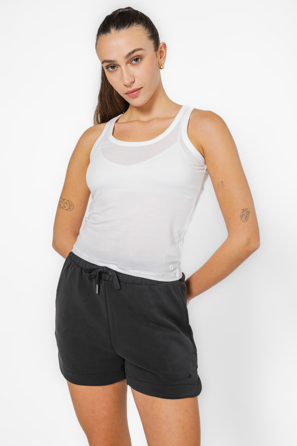גופיית בייסיק עם צווארון עגול בצבע לבן