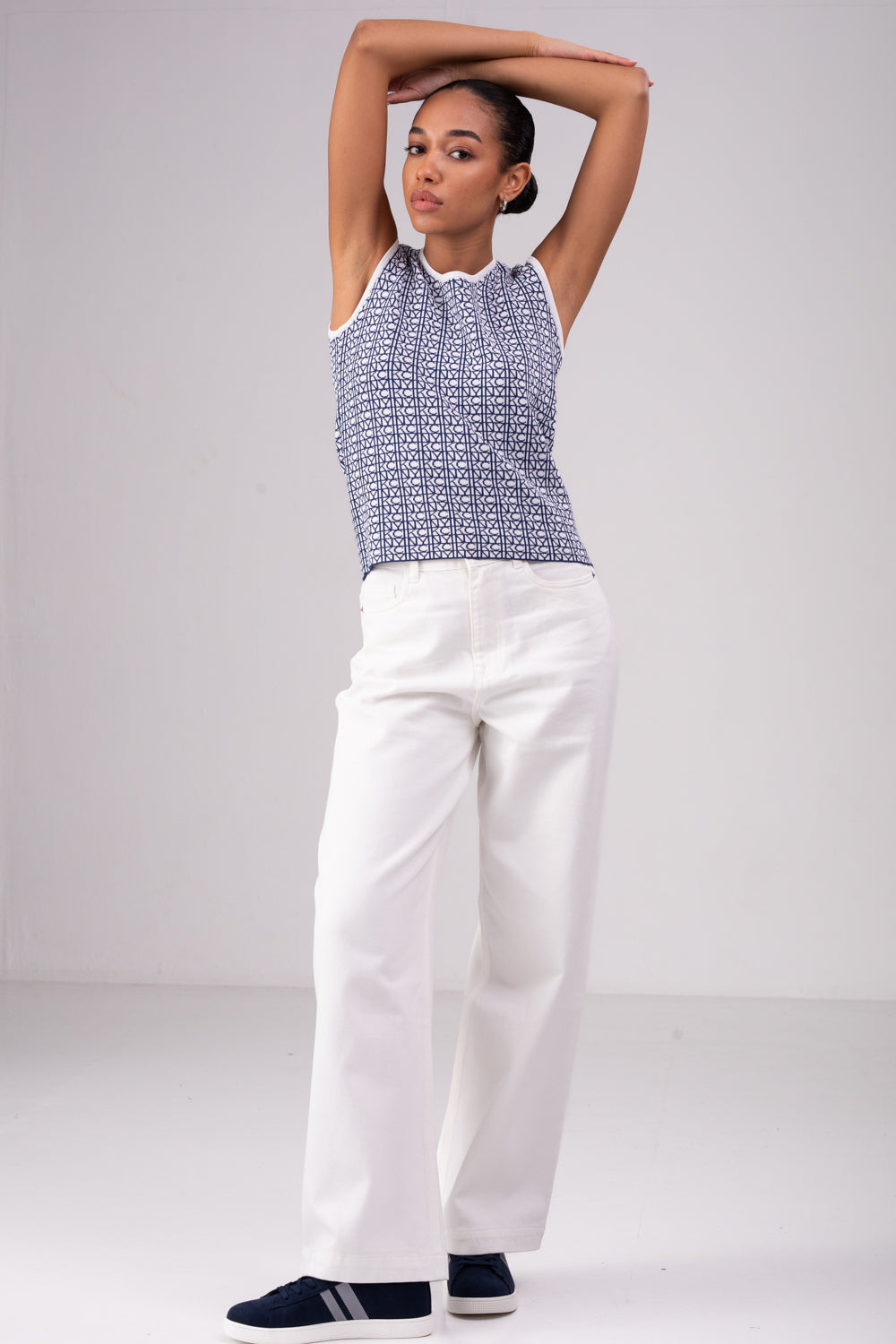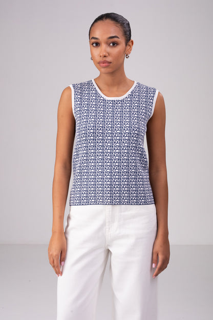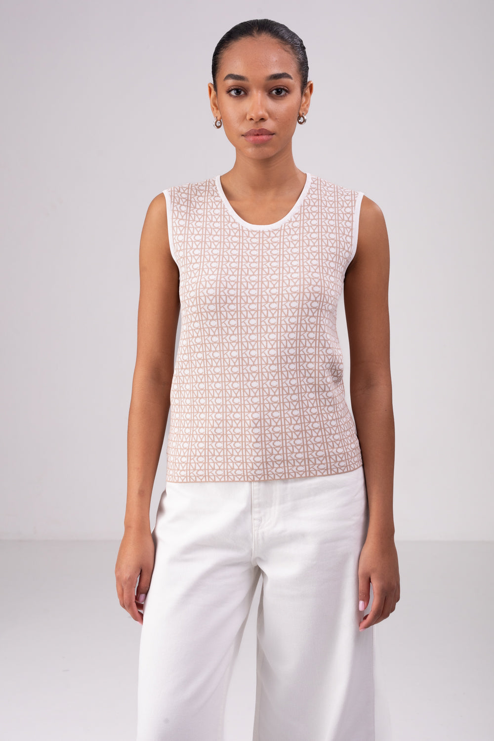 גופיה לנשים מבית המותג KENNETH COLE, מבד ז'קארד בעיצוב גיאומטרי, בגזרה ישרה עם צווארון עגול.
