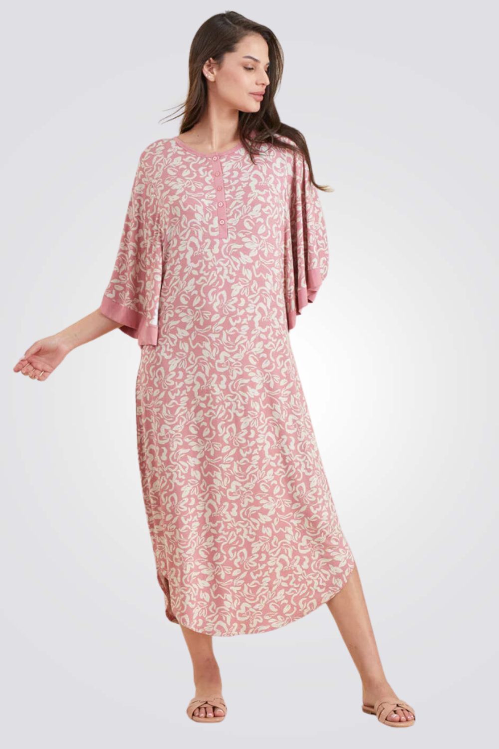 כותונת עטלף פרחים בצבע ורוד