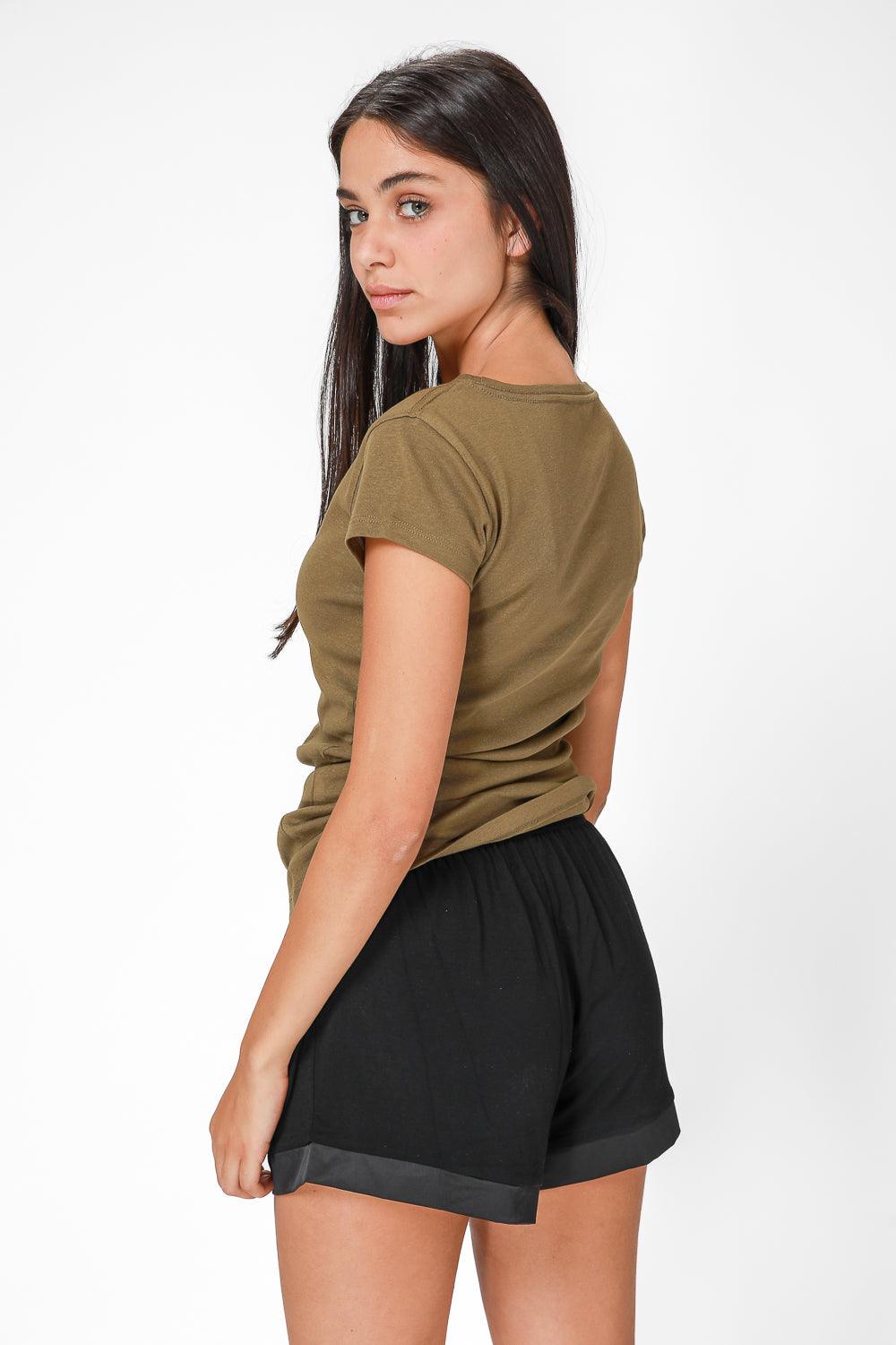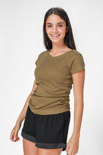 2 חולצות בייסיק קצרות צווארון V ירוק זית