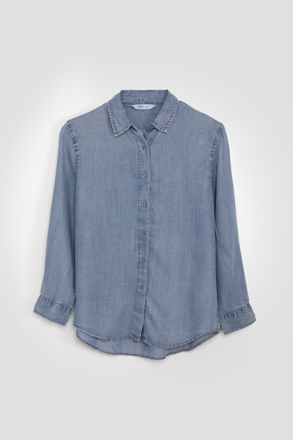 חולצה ארוכה מכופתרת בצבע ג'ינס