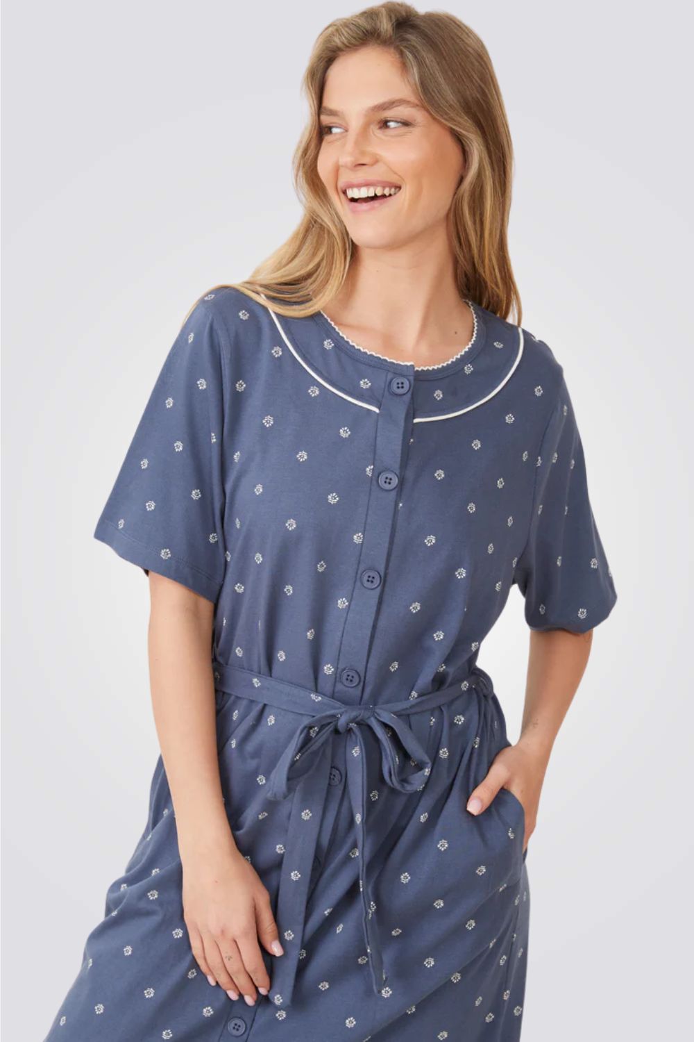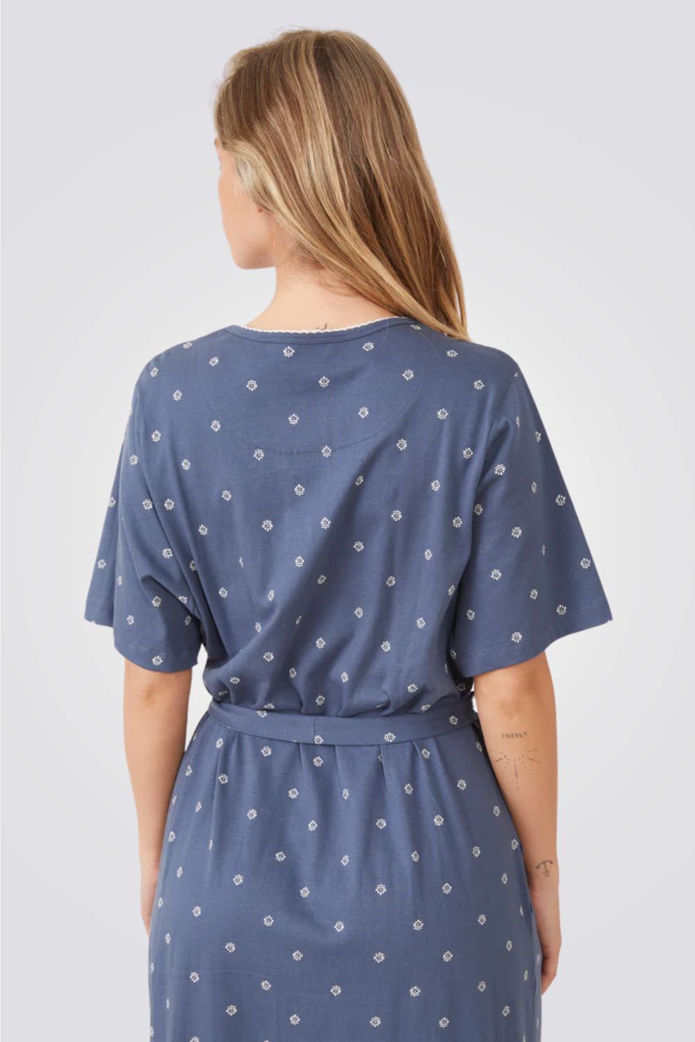 כותונת לילה בהדפס עלים ושרוך קשירה