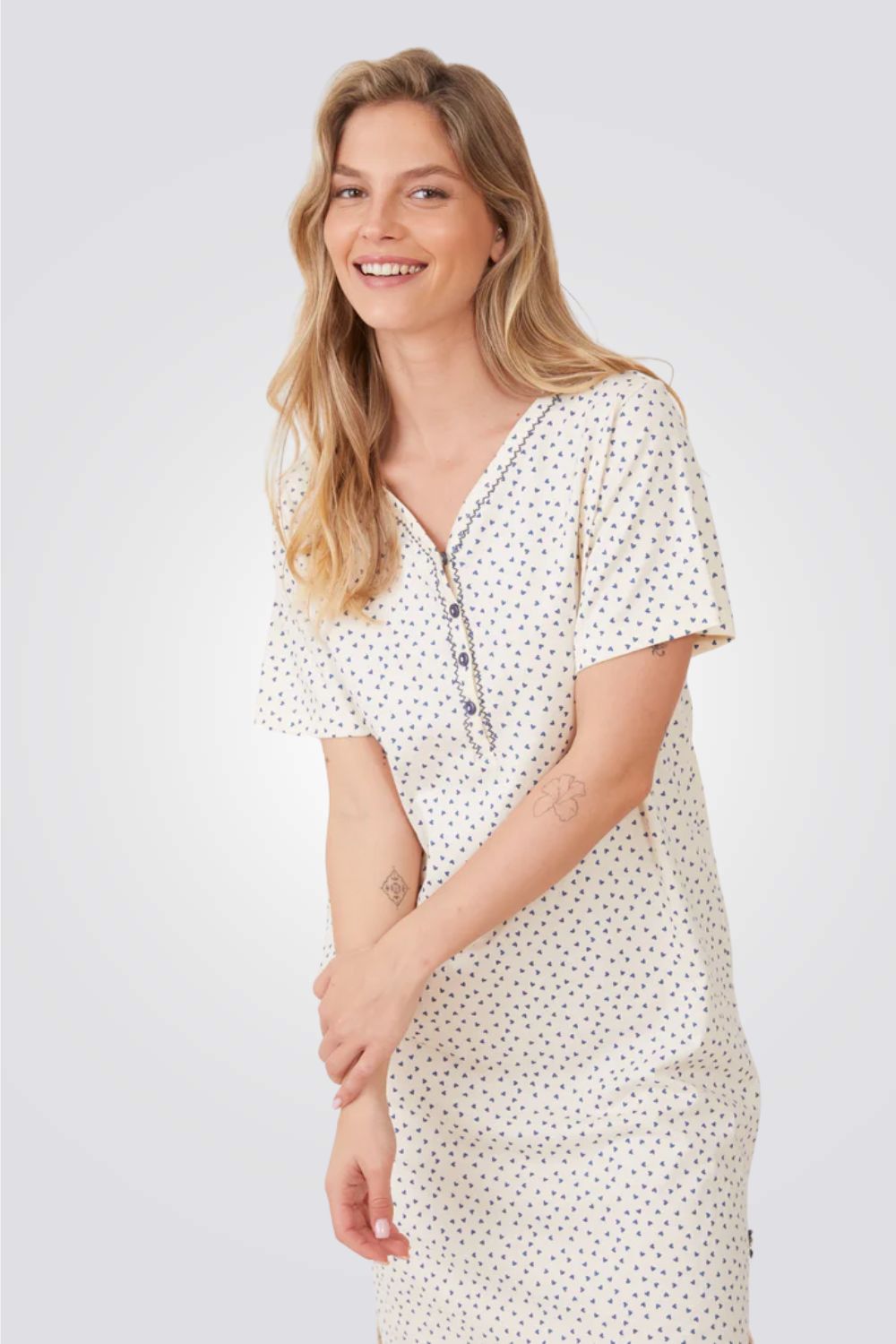 כותונת לילה קצרה בהדפס לבבות