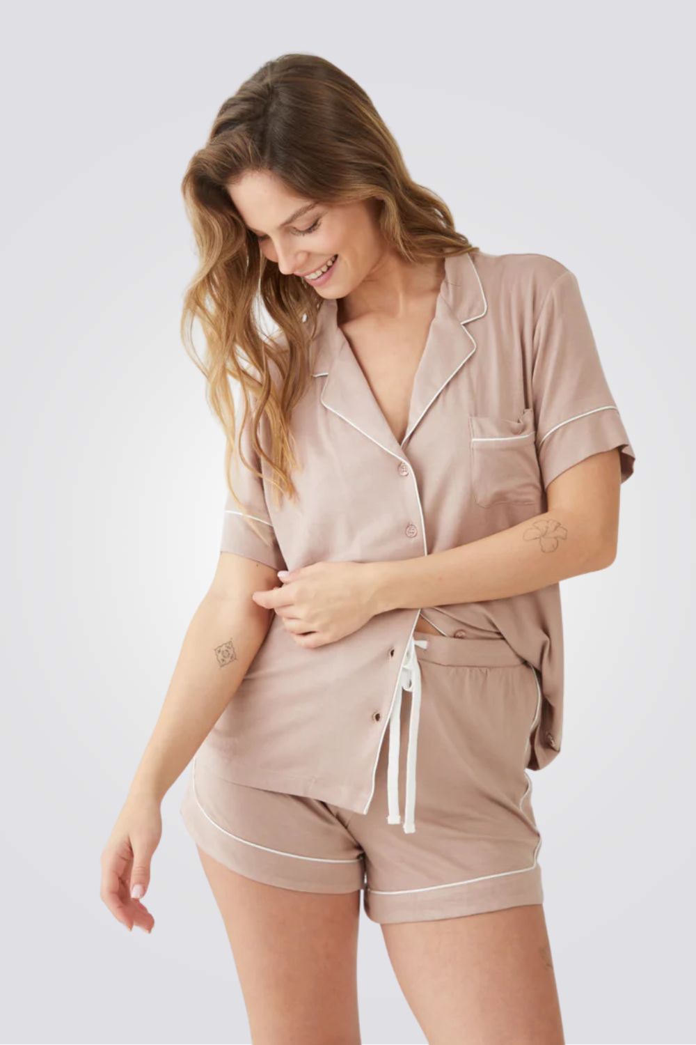סט פיג'מה קצרה מכופתרת קלאסית