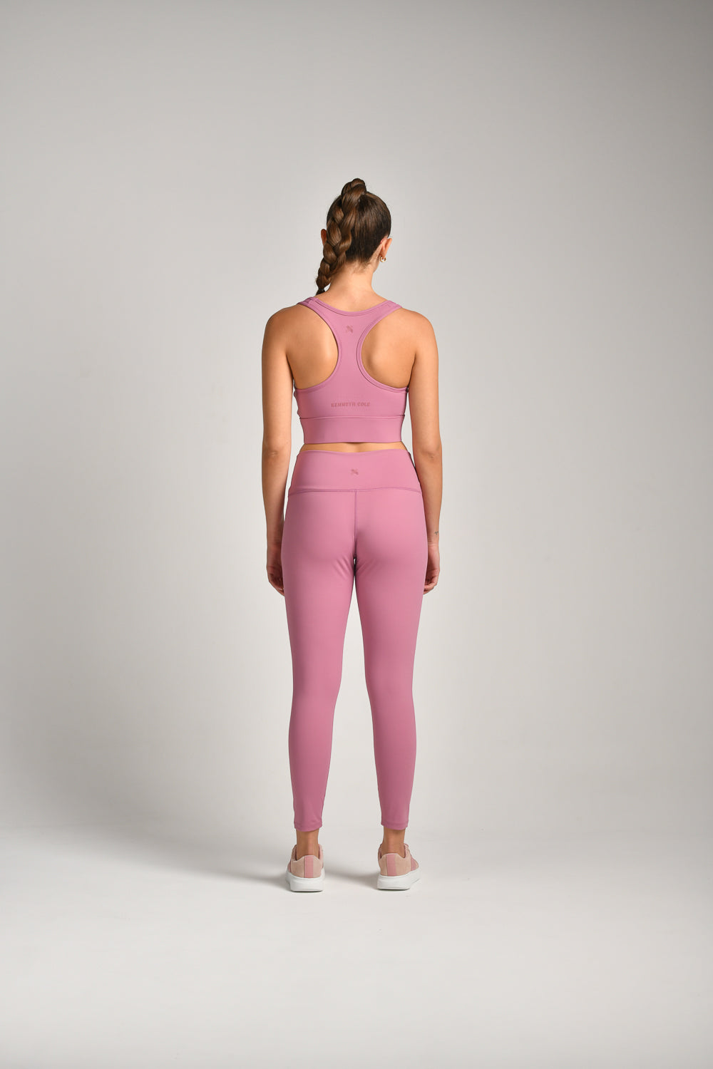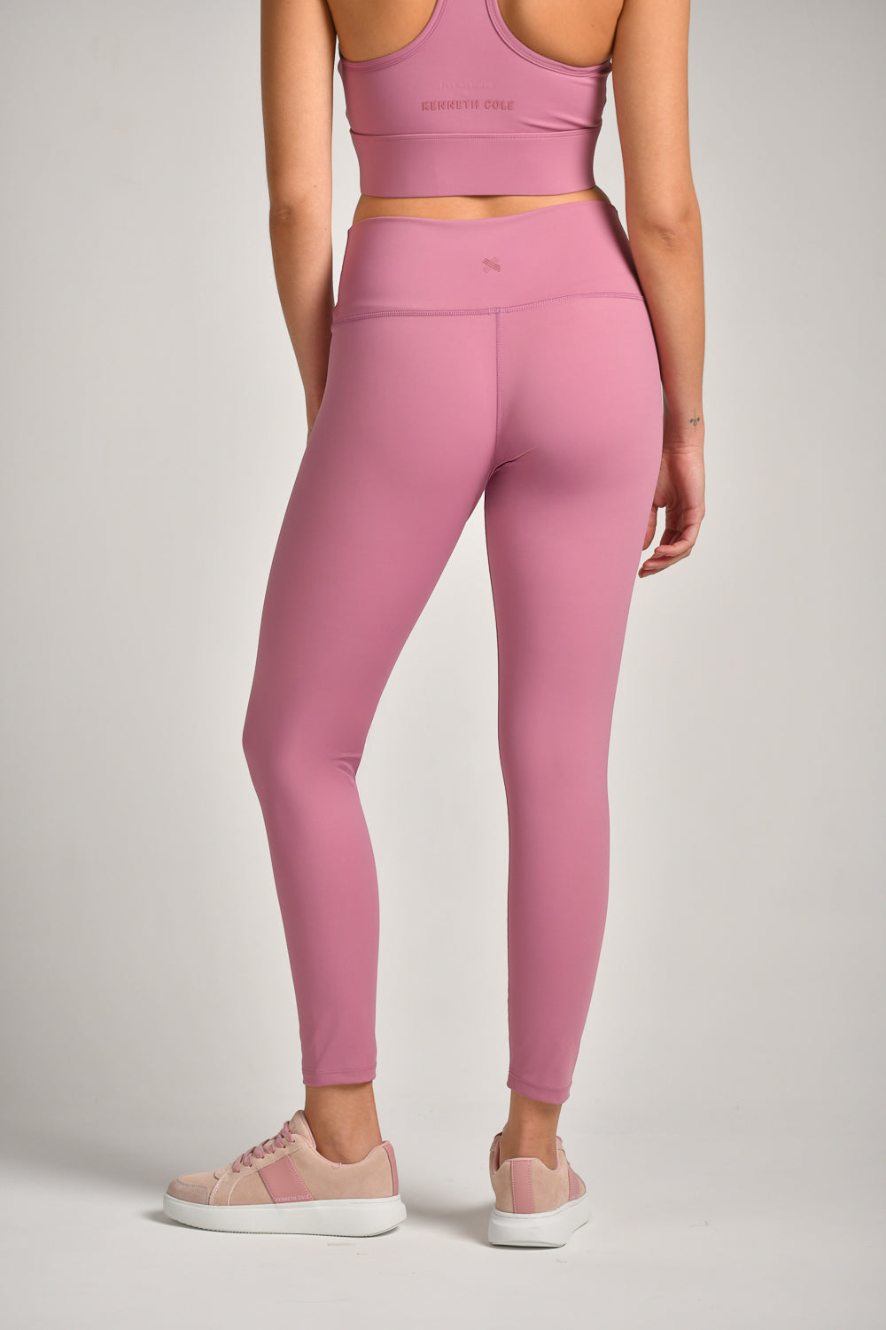 טייץ ספורט מבית המותג KENNETH COLE לנשים בצבע ורוד, מבד צמוד ואוסף, קליל ונוח ובגזרה גבוהה.