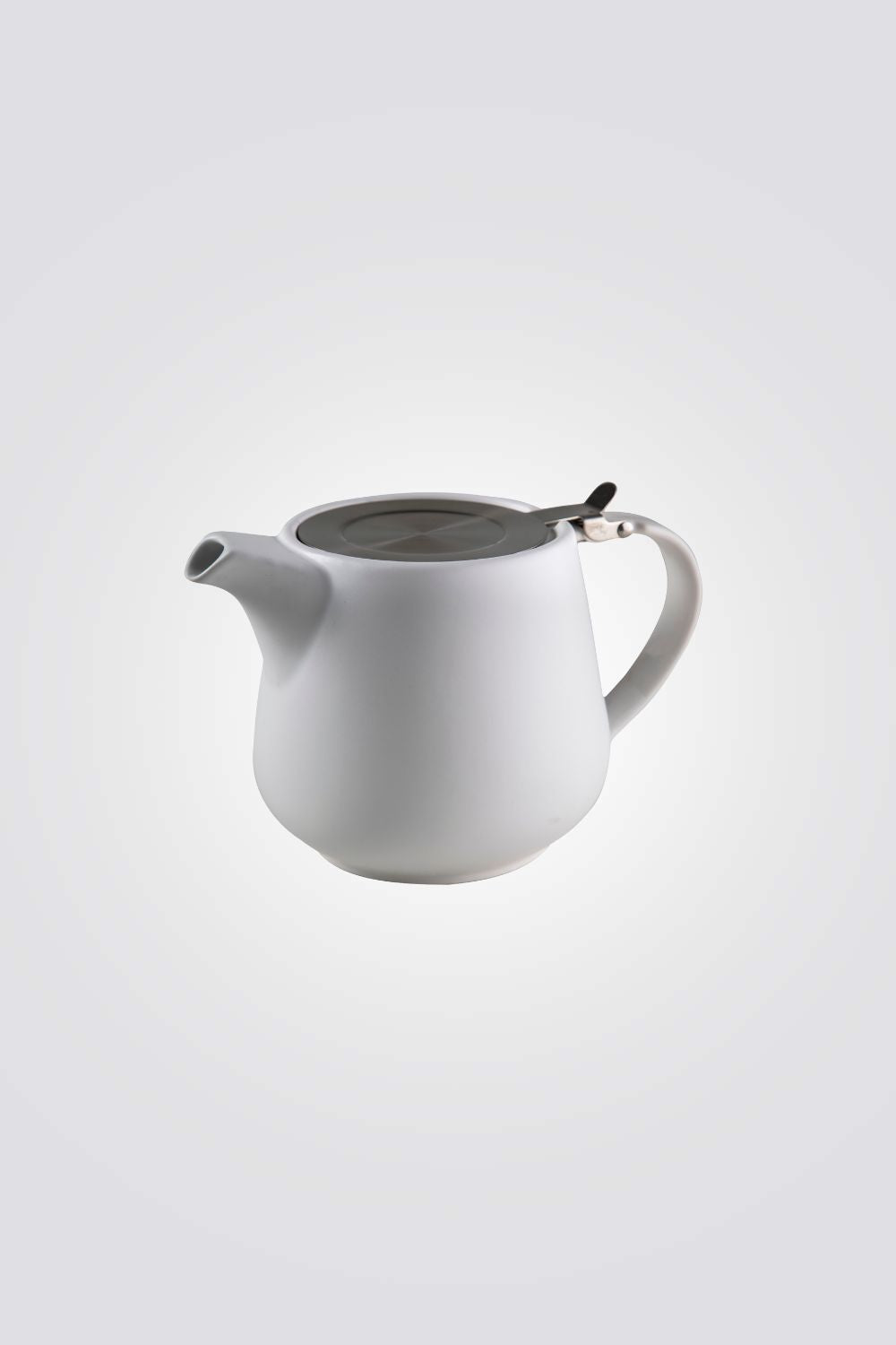 קנקן לתה מבית המותג ARCOSTEEL, עשוי מפורצלן בצבע לבן מט, עם מכסה נירוסטה ורשת חליטה מנירוסטה.
