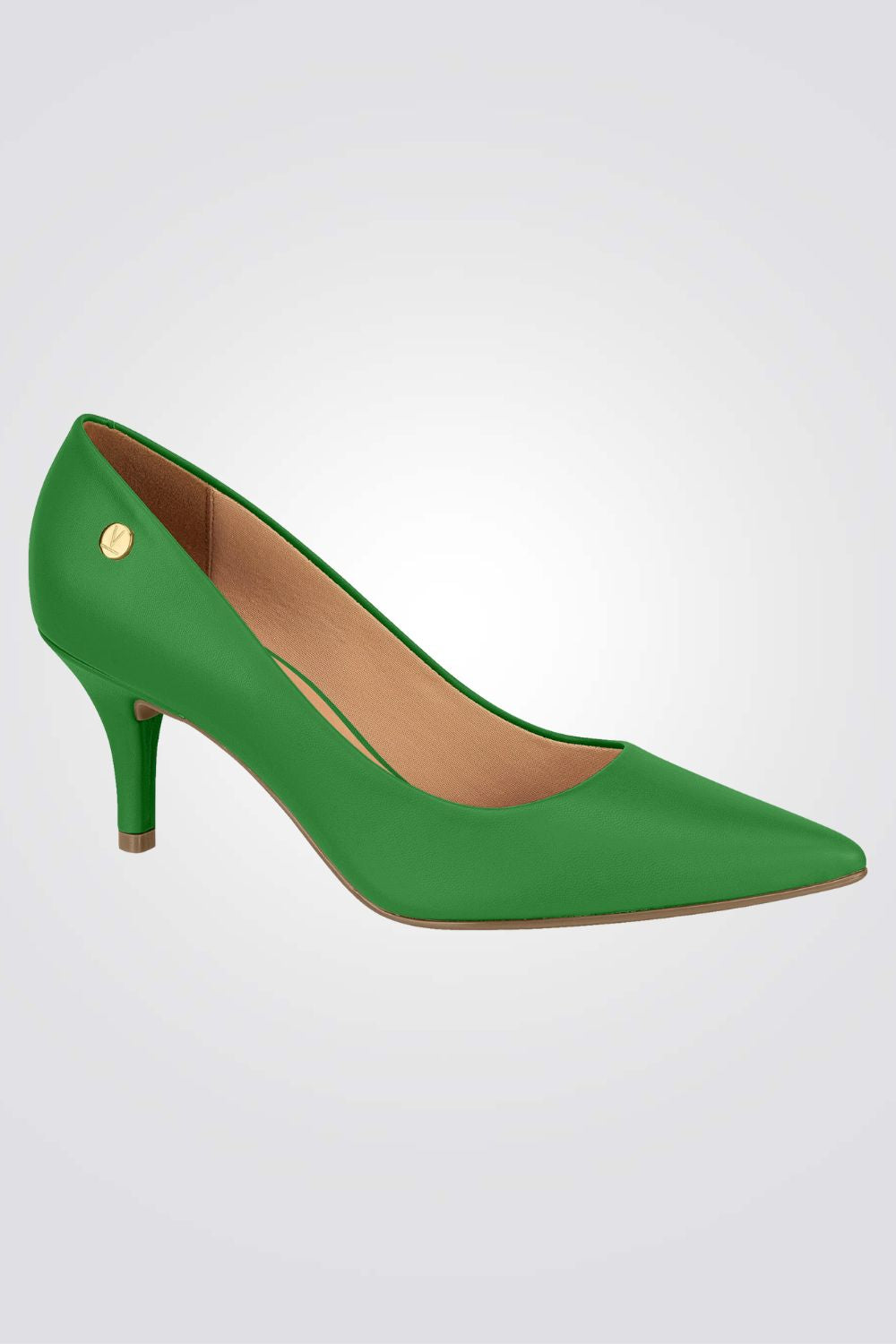 נעלי עקב סירה מבית המותג VIZZANO בצבע ירוק חלקות ועם חרטום מחודד, בעלות מדרס פנימי לנוחות מקסימלית.