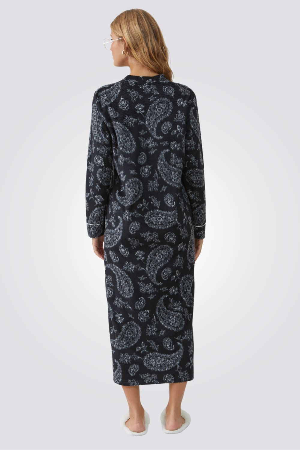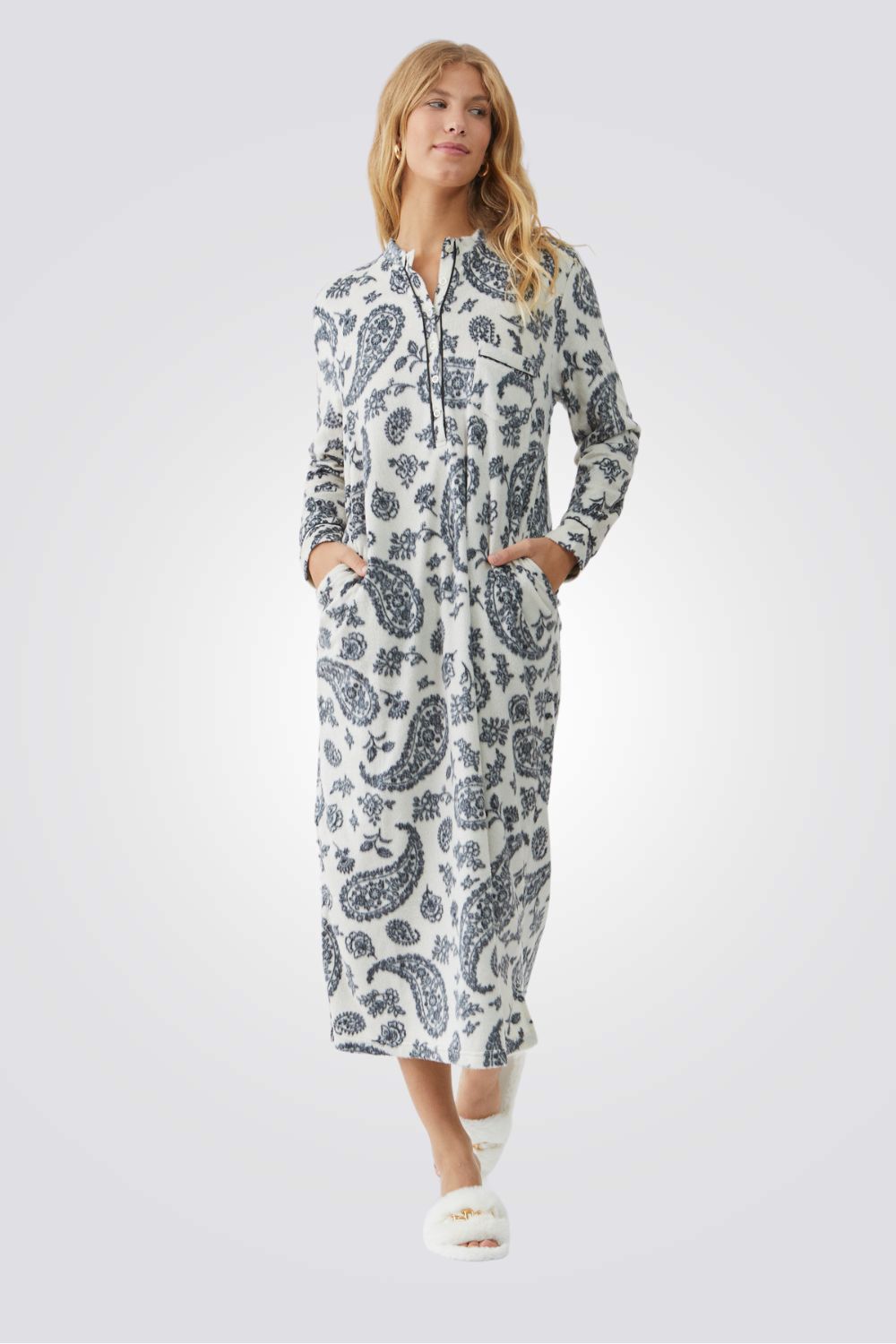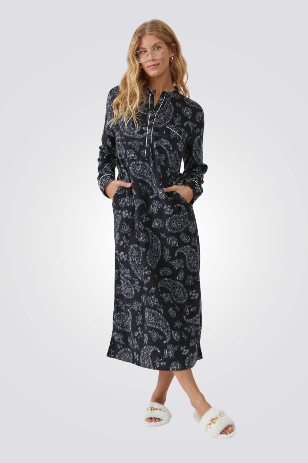 כותונת לילה מבית המותג TEHABAD בעל שרוולים ארוכים, מפת צוואר דש ובעלת כפתורים קטנים בחזית בחלה העליון.