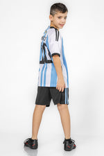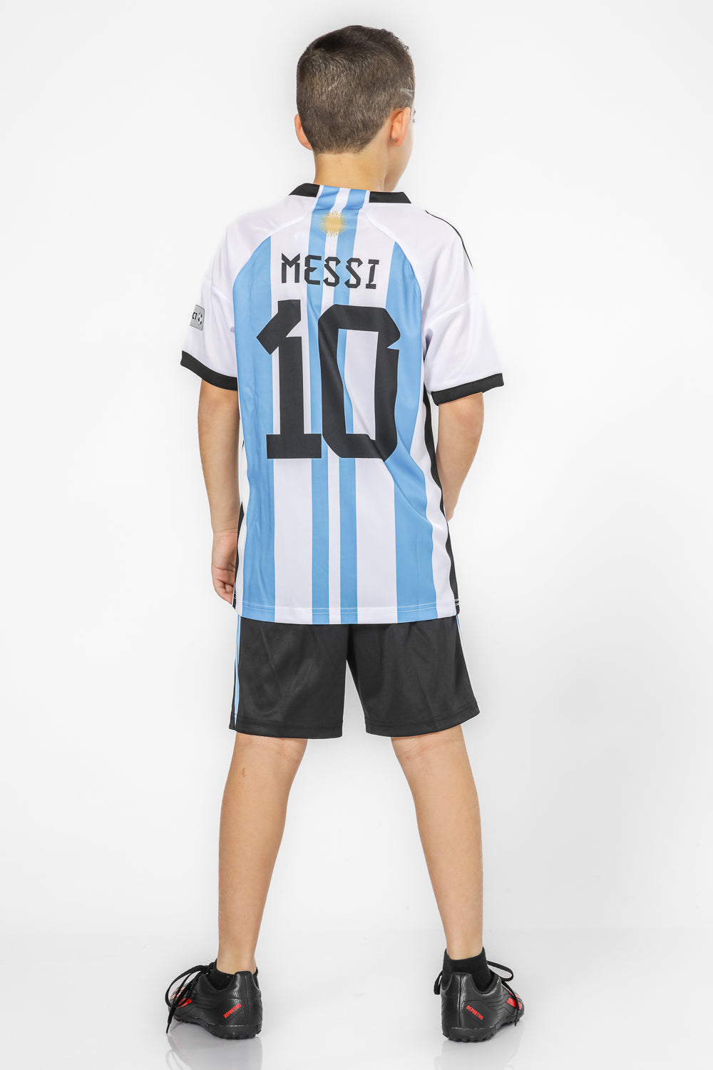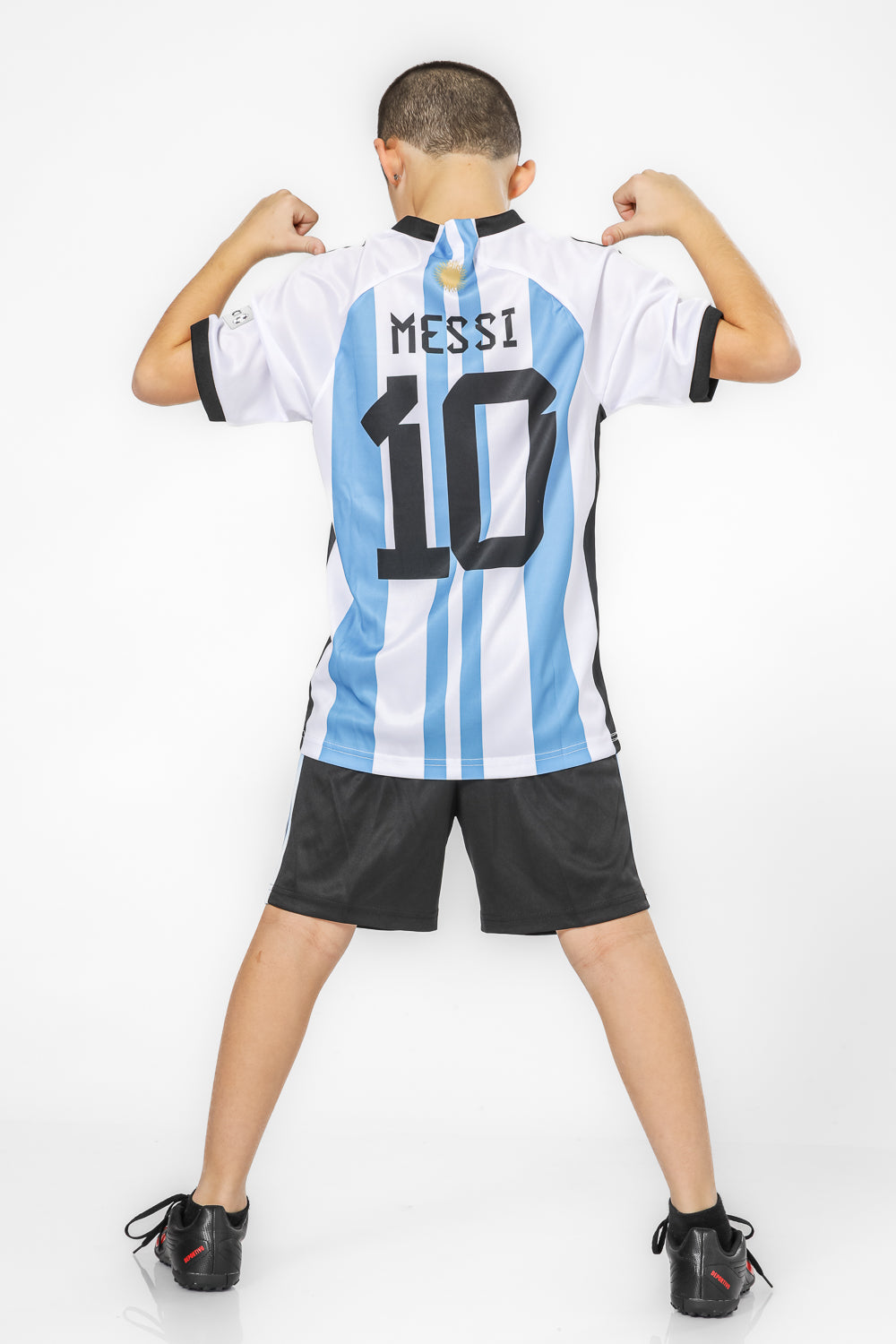 חליפת כדורגל איכותית לילדים ונוער,חליפת נבחרת ארגנטיה מסי, הסט כולל חולצה נוחה וספורטיבית + מכנסים קצרים