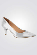 נעלי עקב סירה מבית המותג VIZZANO בצבע כסף מטאל עם חרטום מחודד, בעלות מדרס פנימי לנוחות מקסימלית.