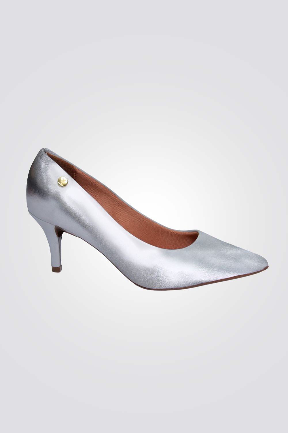 נעלי עקב סירה מבית המותג VIZZANO בצבע כסף, חלקות ועם חרטום מחודד, בעלות מדרס פנימי לנוחות מקסימלית.