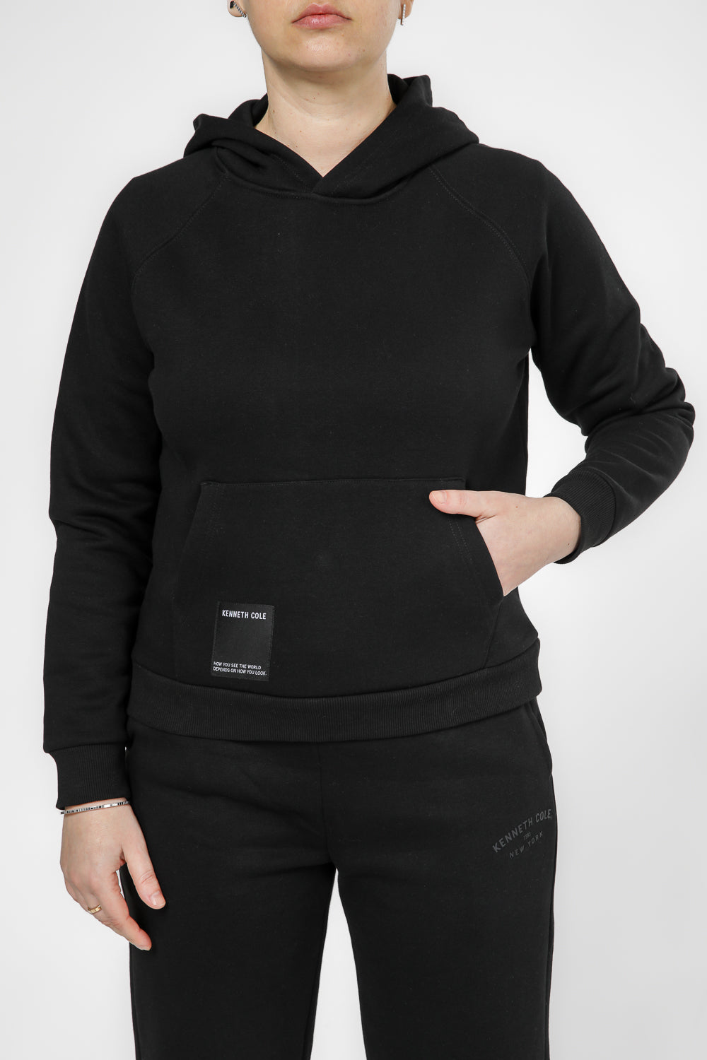 סווטשירט מבית המותג KENNETH COLE עם שרוולים ארוכים, כובע קפוצ'ון וכיס קנגרו קדמי בשילוב תפר של לוגו המותג.